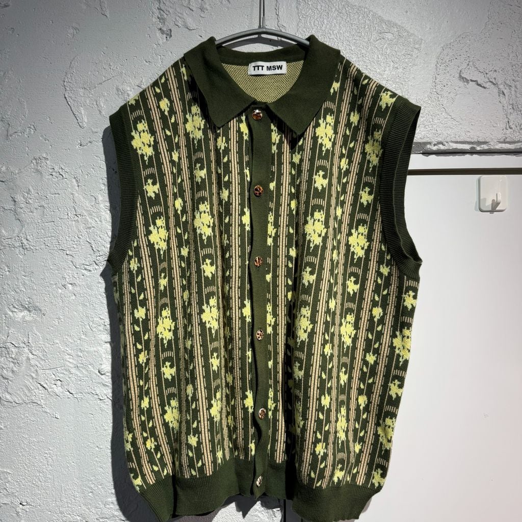 TTT_MSW ティー 22SS Flower Jacquared Knit Vest ニットベスト TTT-2022SS-KT01 グリーン系 size:L【表参道A10】 | ブランド古着Brooch