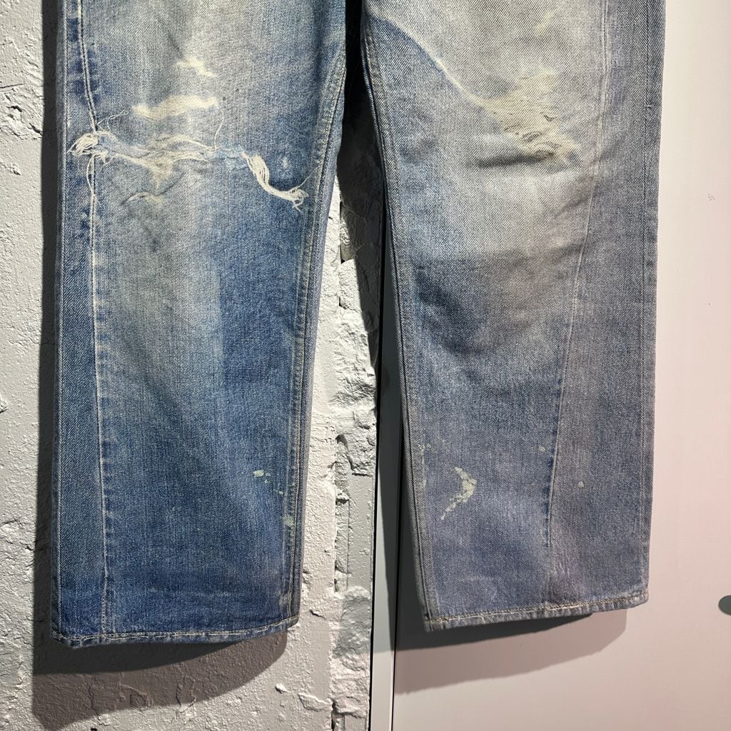 ダメージ感や両サイドのハギ合わせをトロンプルイユのプリントで表現したアイテムになります。