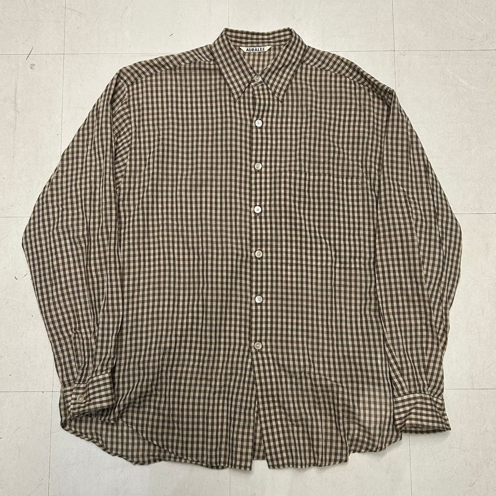 AURALEE オーラリー 25SS Airy Light Cotton Check Big Shirt シャツ A25SS01GC ブラウン size:3【中目黒A10】 | ブランド古着Brooch