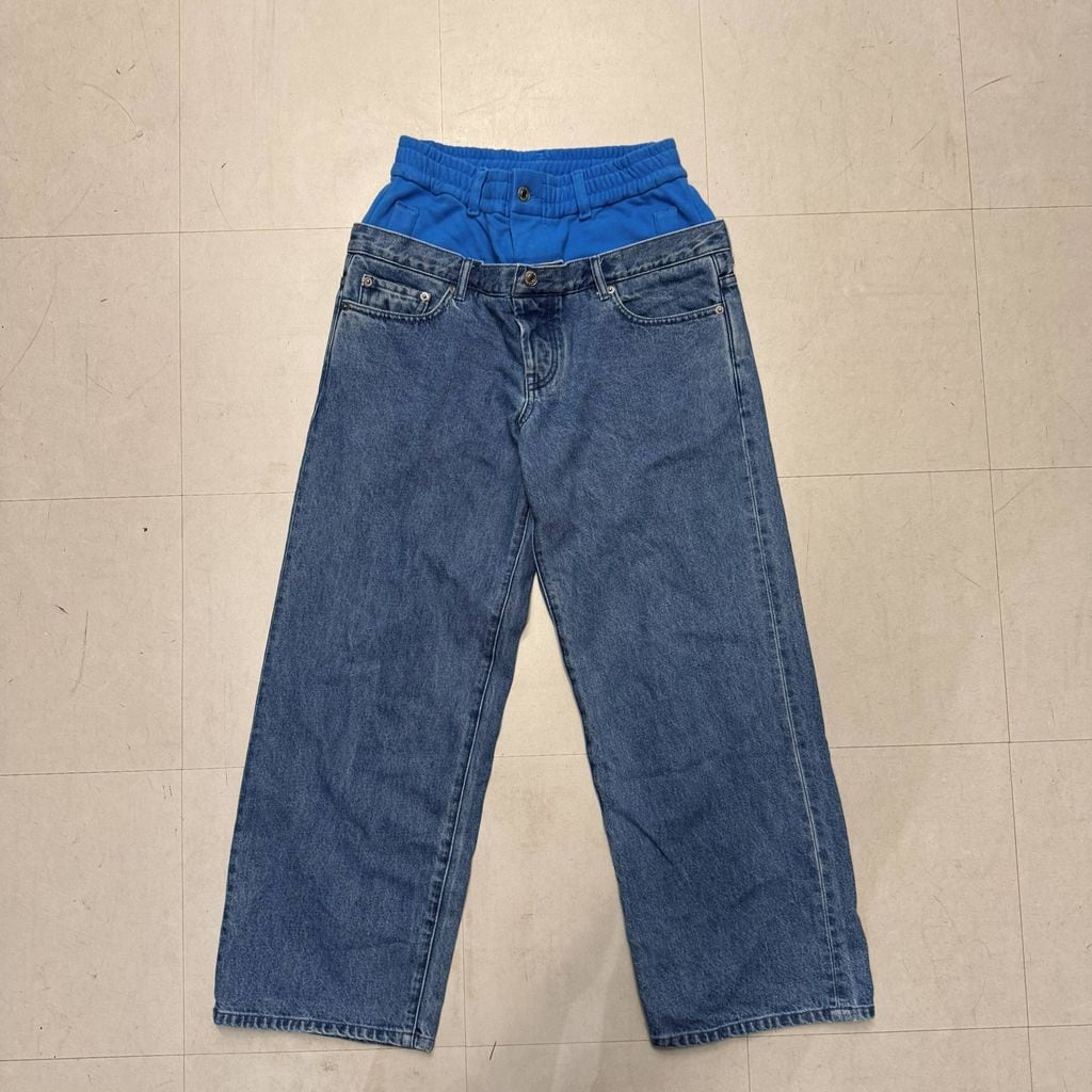 ウエストにスウェットパンツのディティールを入れ、デニムパンツとドッキングさせたデザインが特徴のアイテムです。