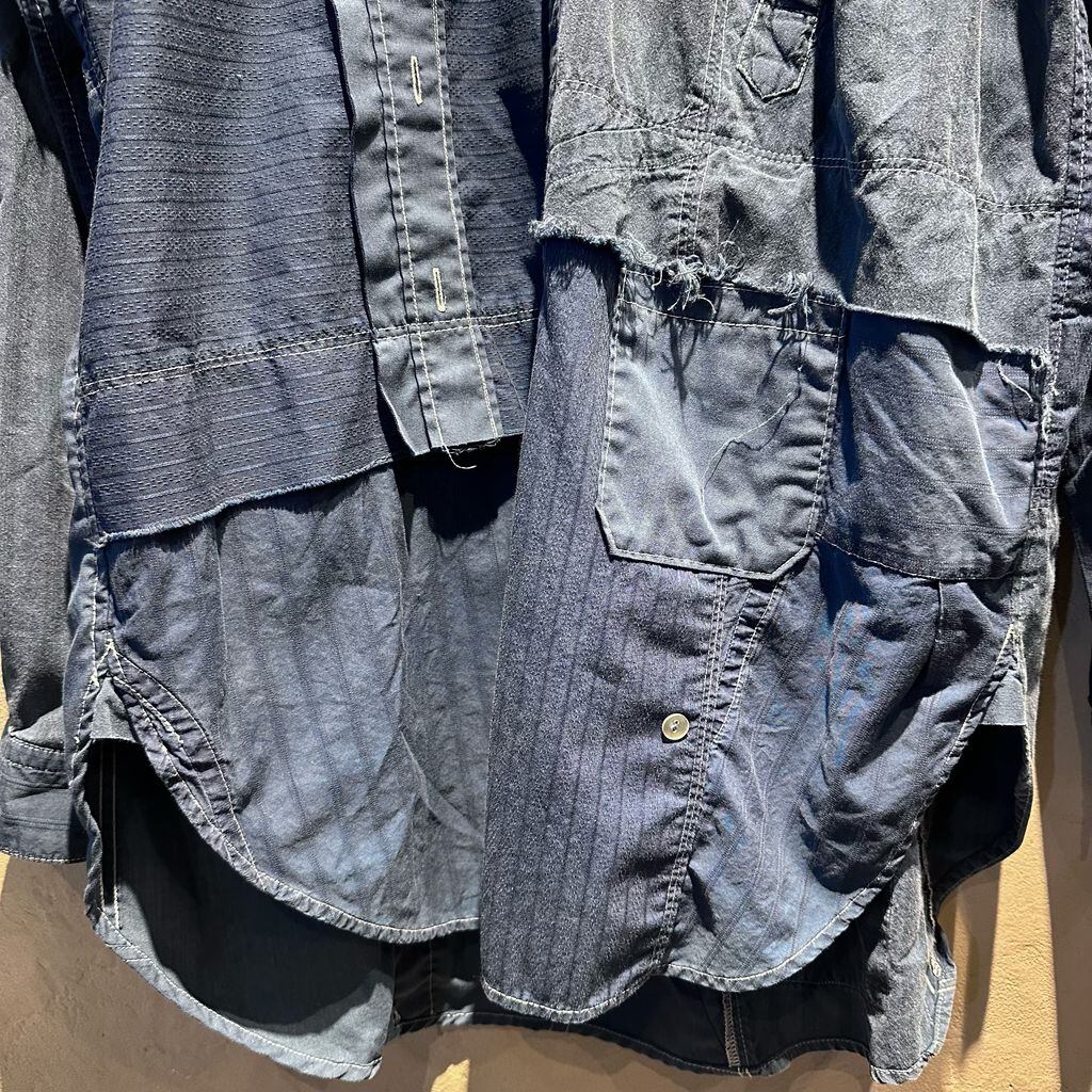 MIHARA YASUHIRO MODIFIED ミハラヤスヒロ モディファイド Reconstructed Indigo-dyed Docking Shirt ドッキングシャツ M0DI3111 インディゴ size:46【代官山A11】