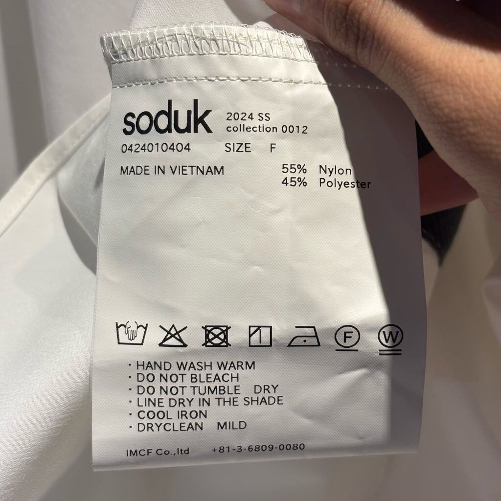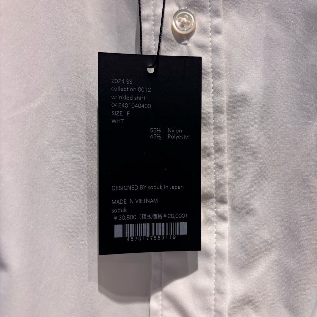 soduk スドーク 24SS wrinkled shirt 変型シャツ 0012 ホワイト size:F【代官山A11】