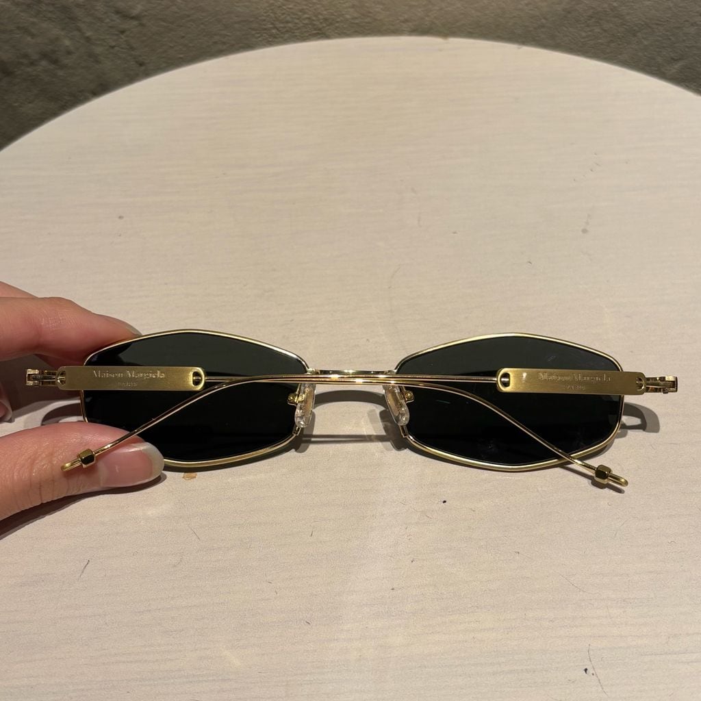 アングルドフレームとテンプルに刻印されたMaison Margielaのロゴ入りメタルプレートが特徴的なアイテムです。