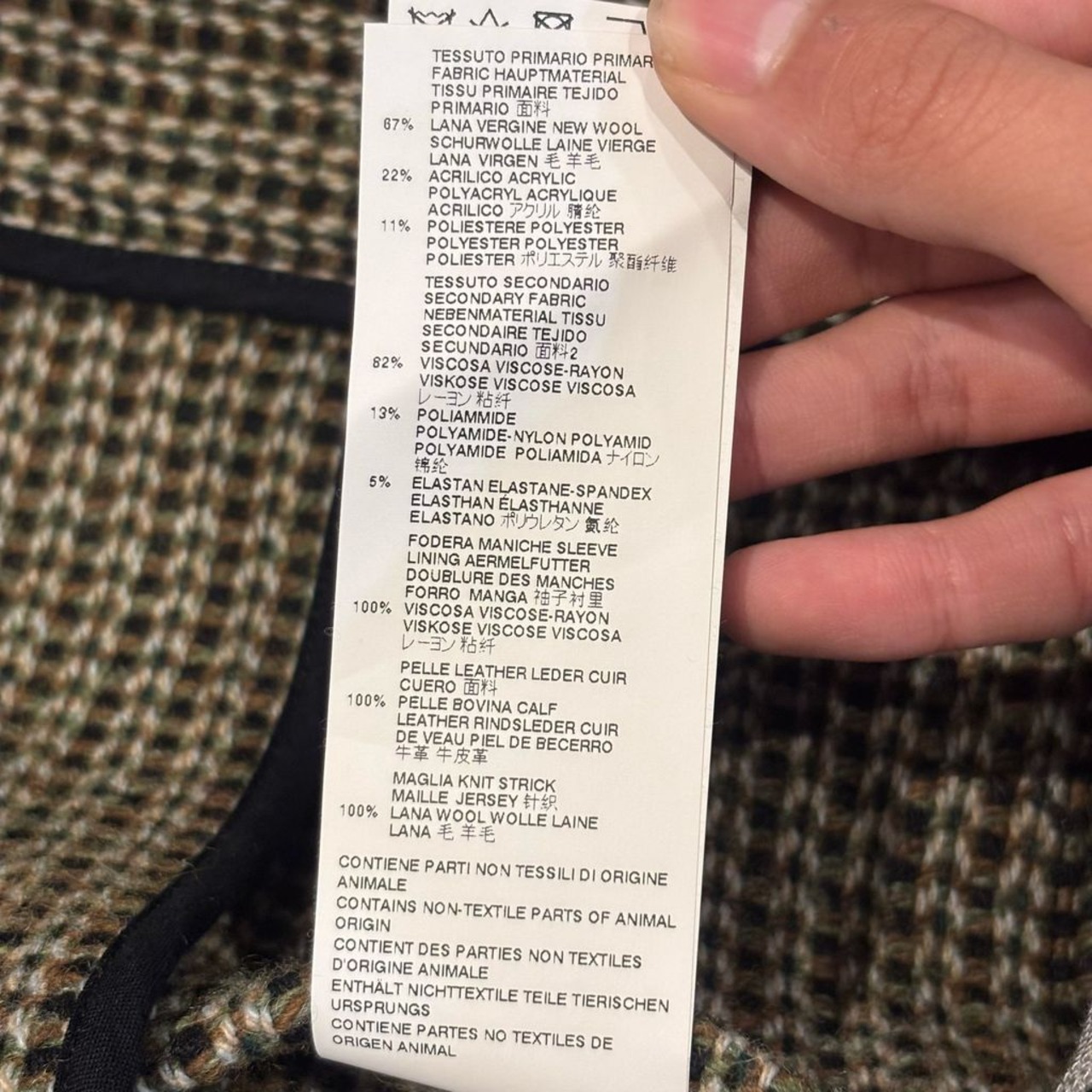 レザー、ウール、レーヨンが組み合わされたアイテムです。