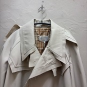 襟や襟周りのデザインが特徴的で、解れ加工が施されているアイテムです。