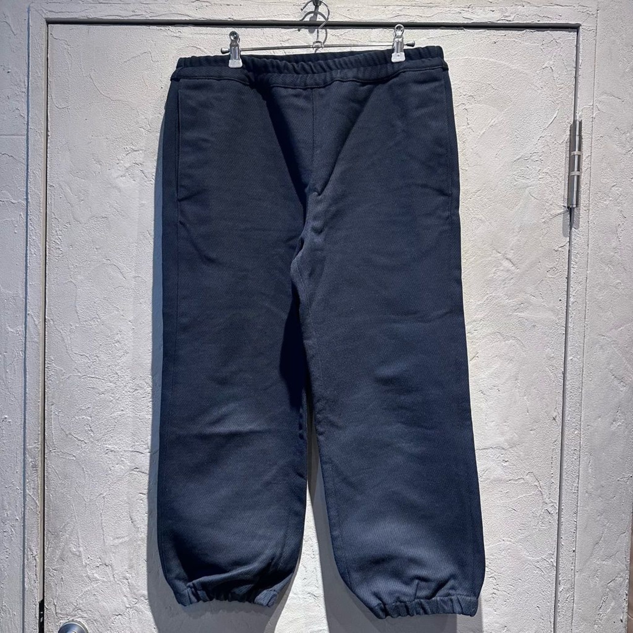 重厚感のある生地で丈が短いテーパードパンツとなっております。