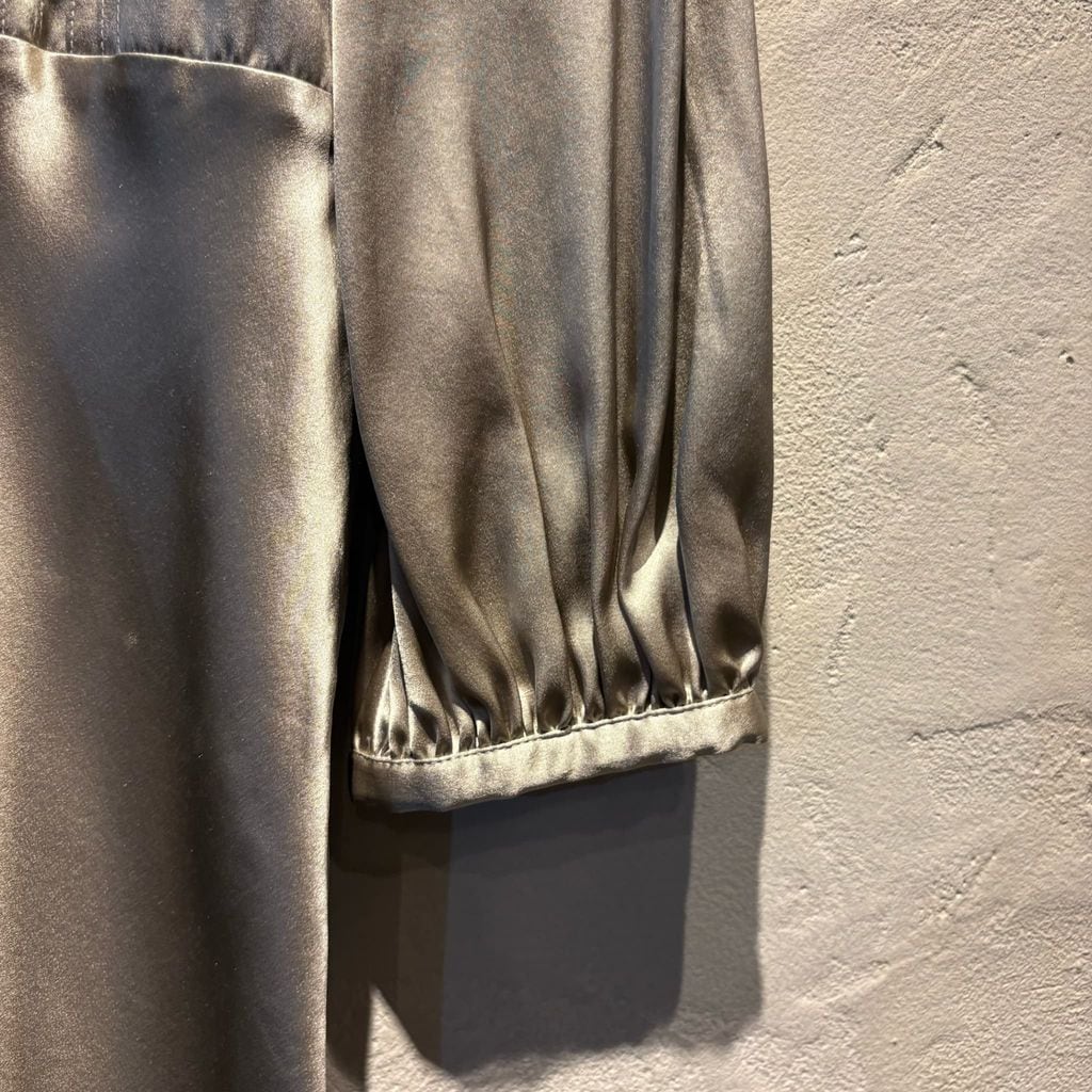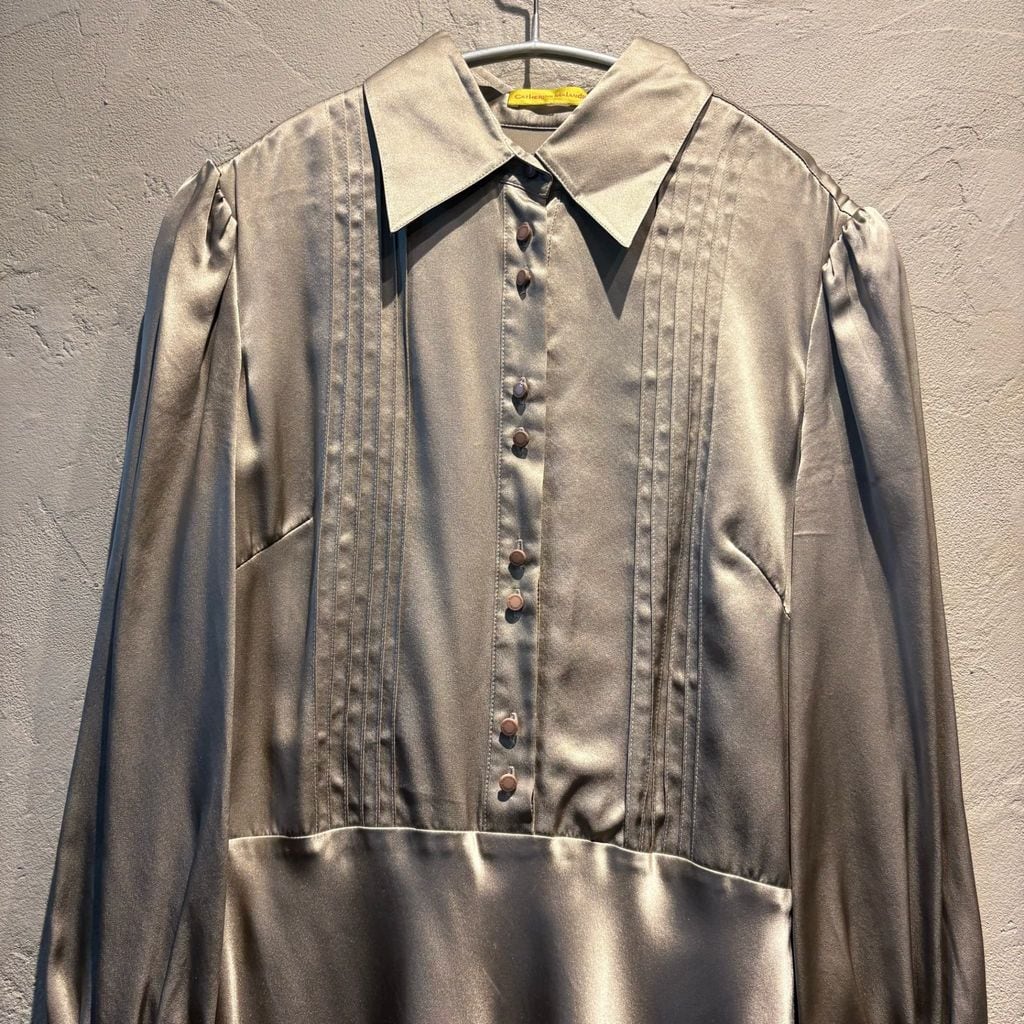 光沢感のあるシャツドレスです。