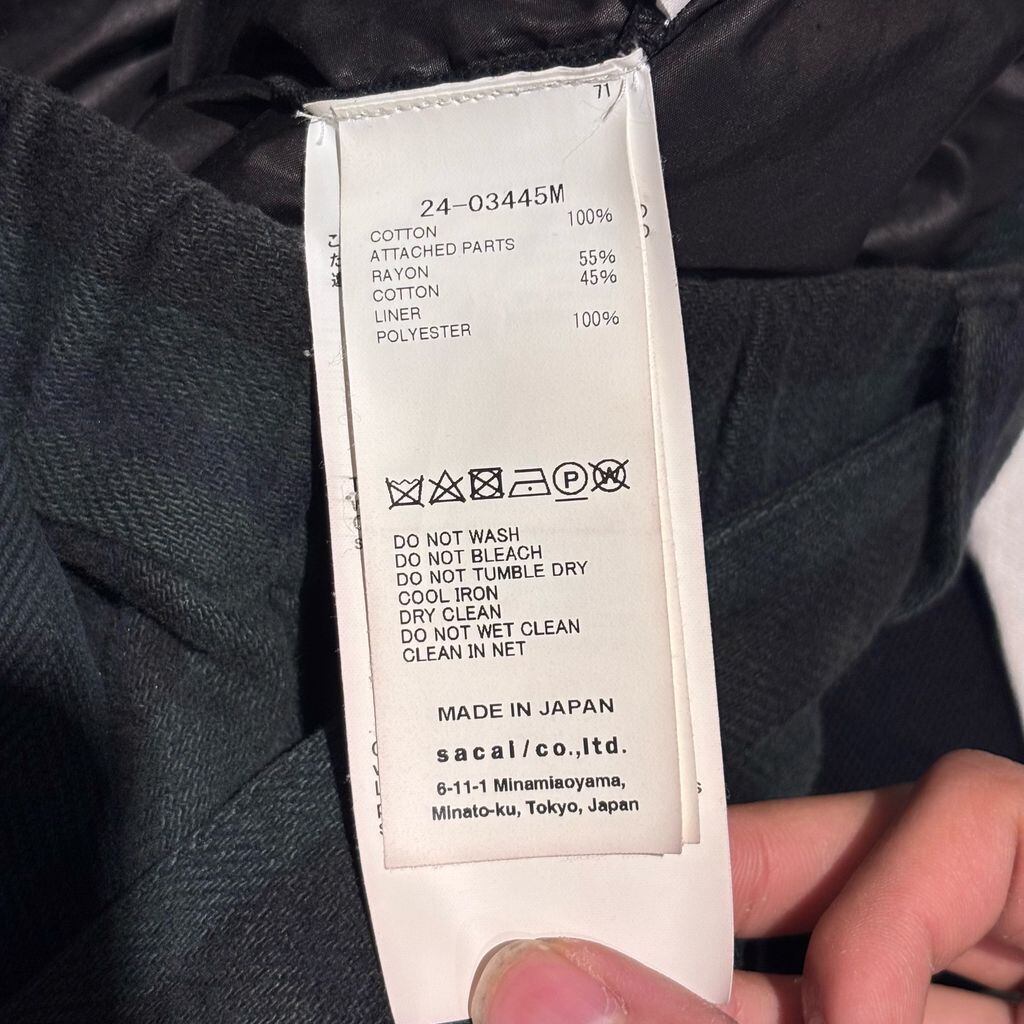 sacai サカイ 24AW Plaid Pants ドッキングパンツ 24-03445M ダークグリーン size:0【代官山A11】
