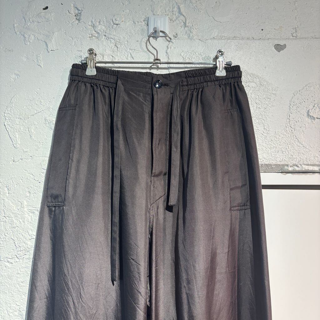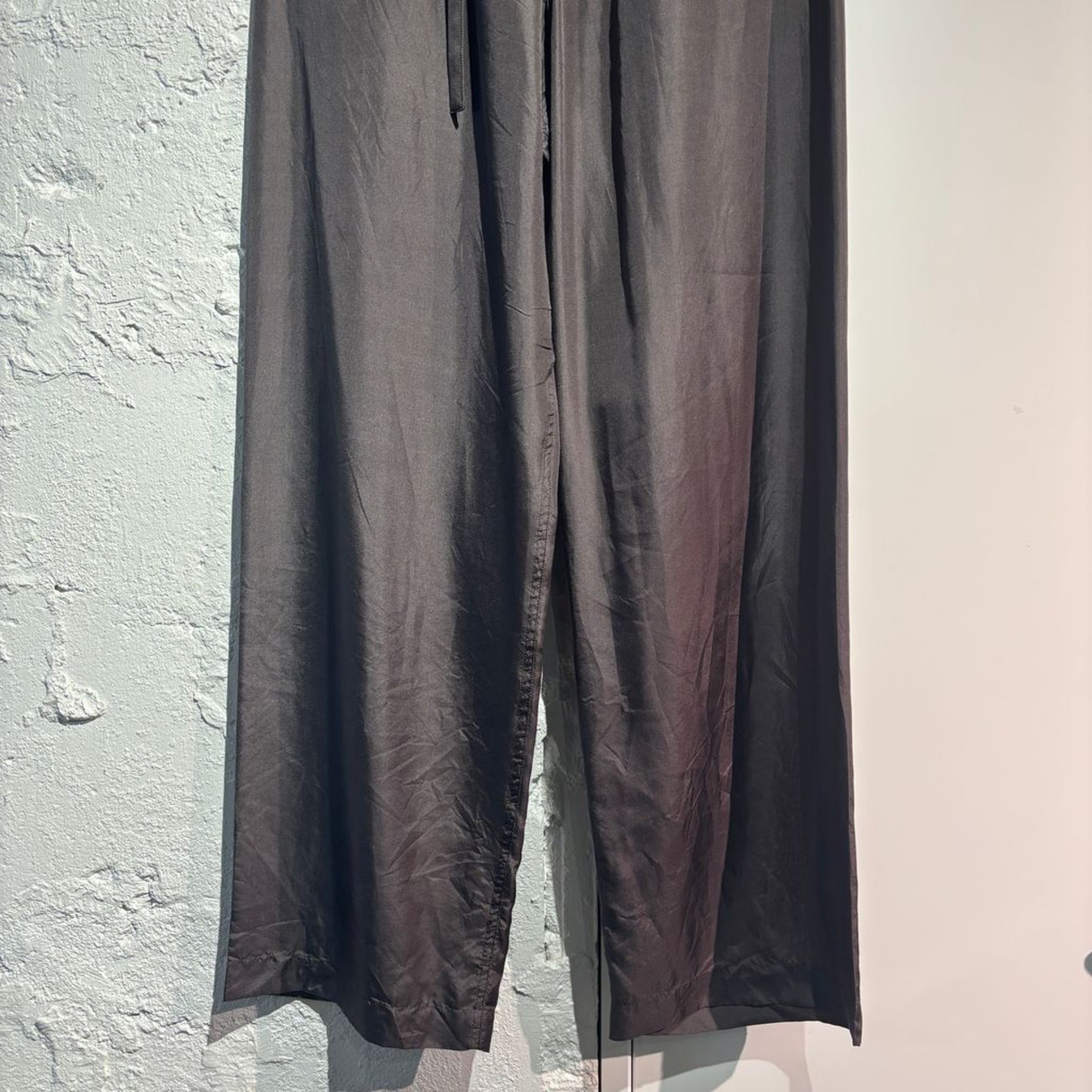 滑らかで上質なシルク素材を使用した、高級感のあるワイドイージーパンツです。