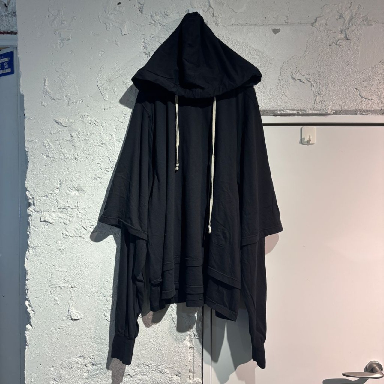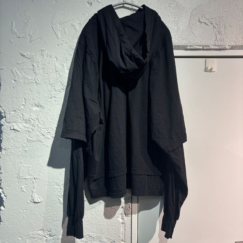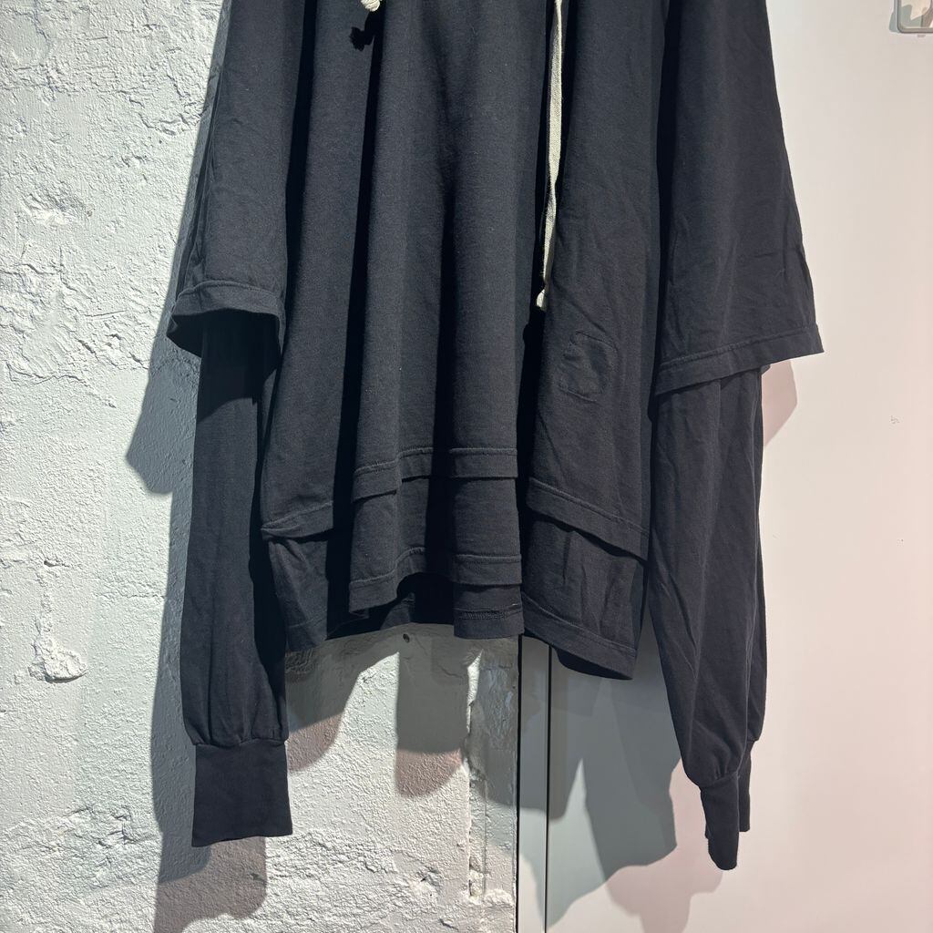 Rick Owens DRKSHDW リックオウエンス ダークシャドウ Huster Layered Hoodie レイヤードフーディー パーカー DU02A3281-RN ブラック size:M【表参道A11】