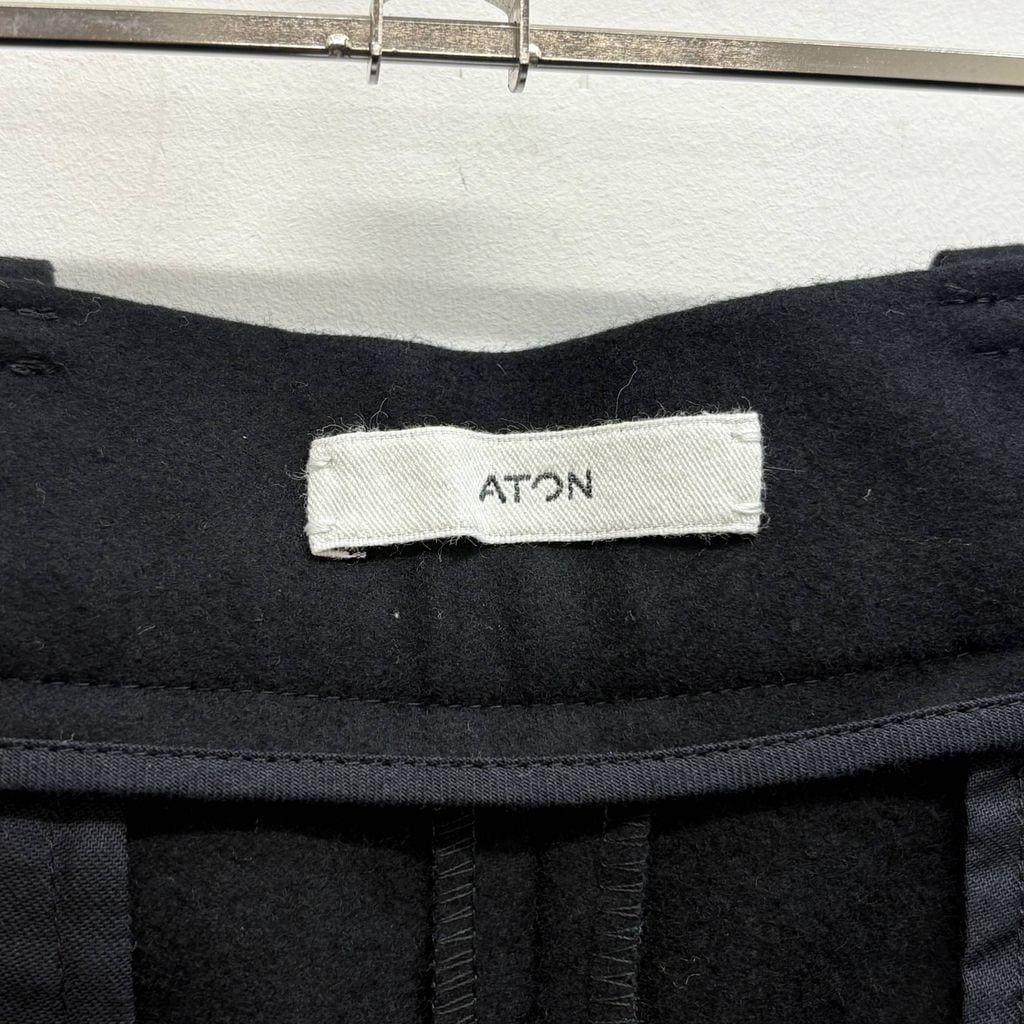 ATON エイトン MERINO COLLEGE FLANNEL WIDE PANTS ワイドパンツ 7110554 ブラック size:04【中目黒A11】