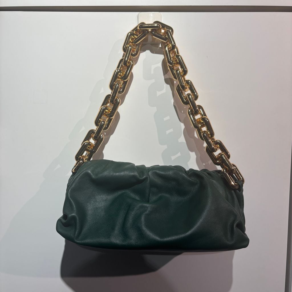 BOTTEGA VENETA ボッテガヴェネタ The Chain Pouch チェーンポーチ レザーショルダーバッグ 620230 VCP40 グリーン ゴールド【表参道A11】