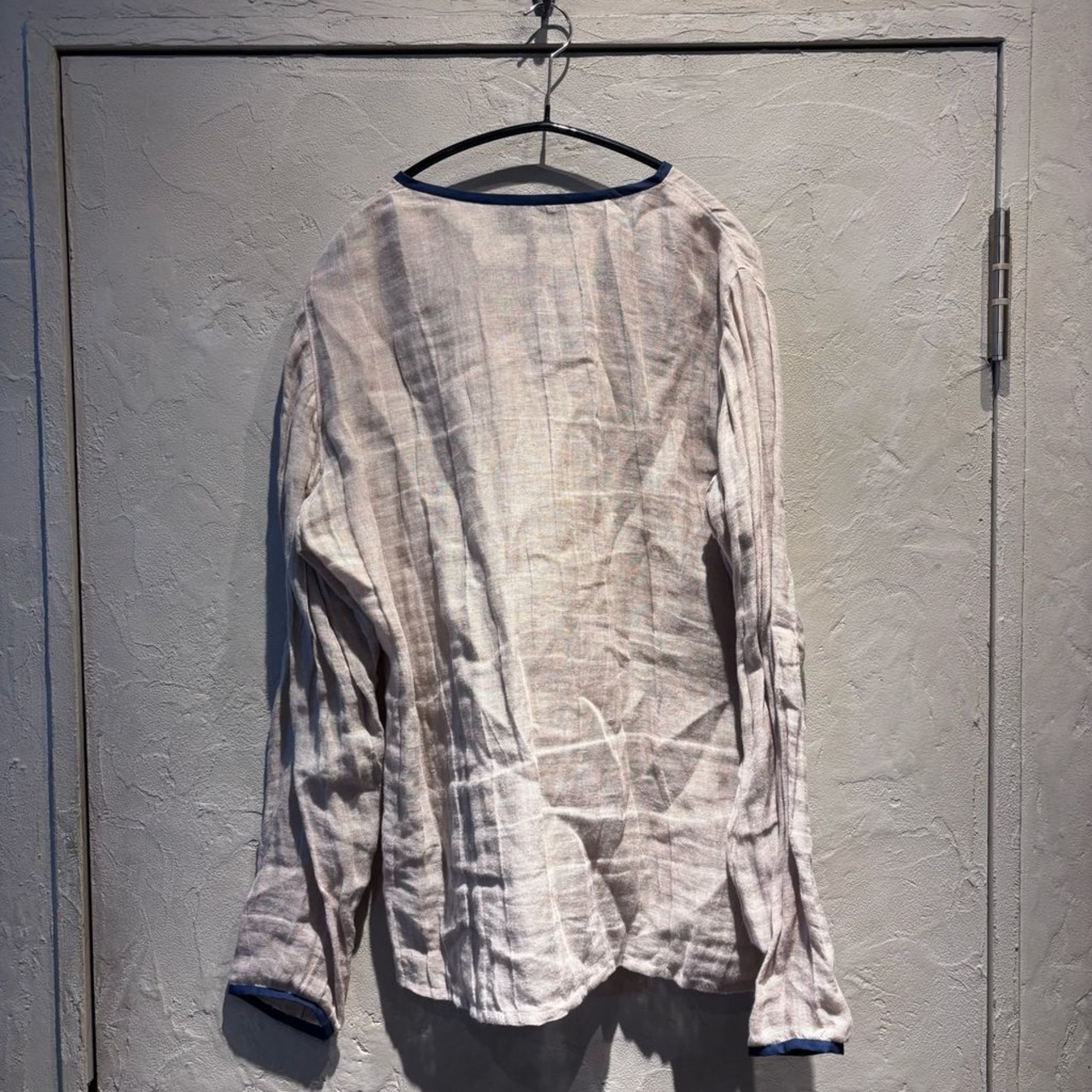フロント部分のワッペンが特徴的なリネントップスです。