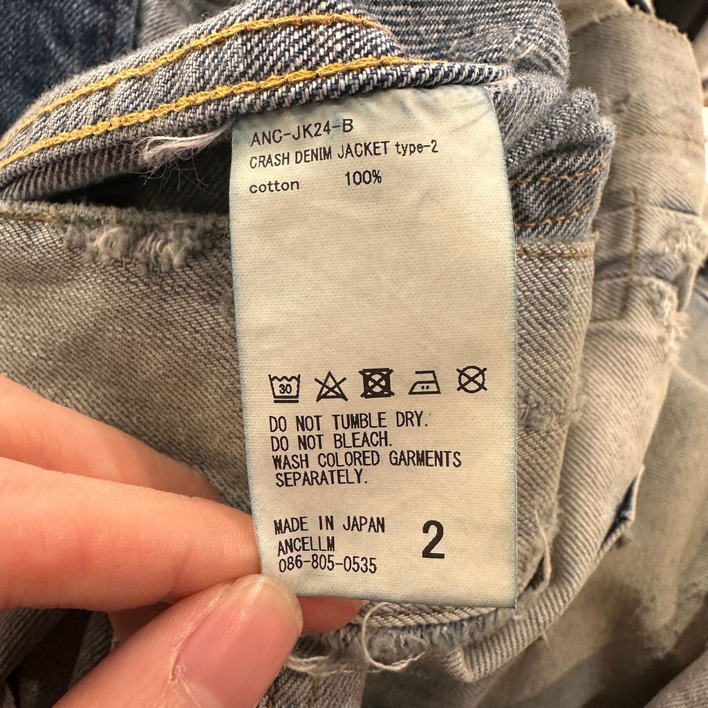 ANCELLM アンセルム 23AW CRASH DENIM JACKET type-2 ダメージ加工デニムジャケット ANC-JK24-B ライトブルー size:2【表参道A12】