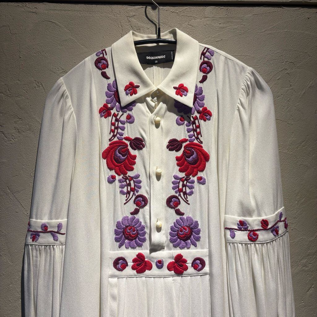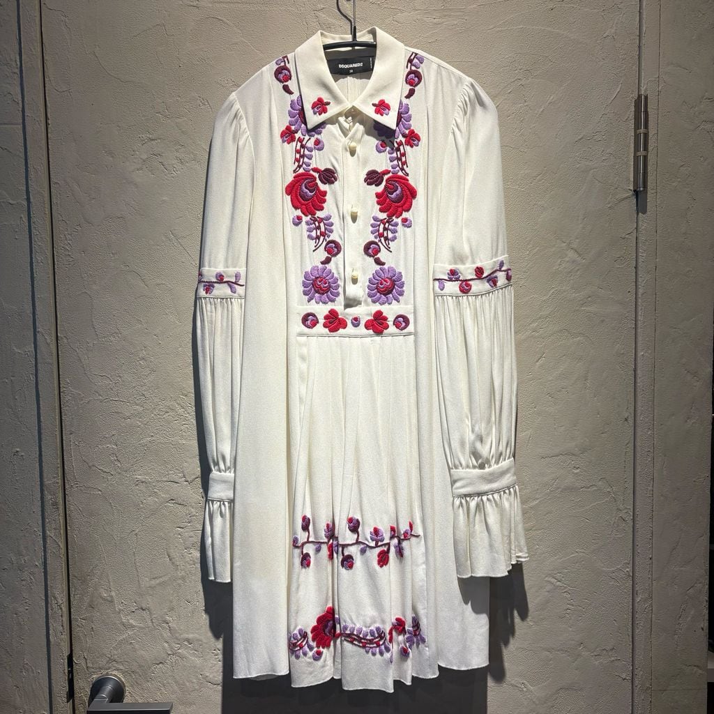 DSQUARED2 ディースクエアード 花柄刺繍ワンピース S75CV0549 ホワイト size:38【代官山A12】
