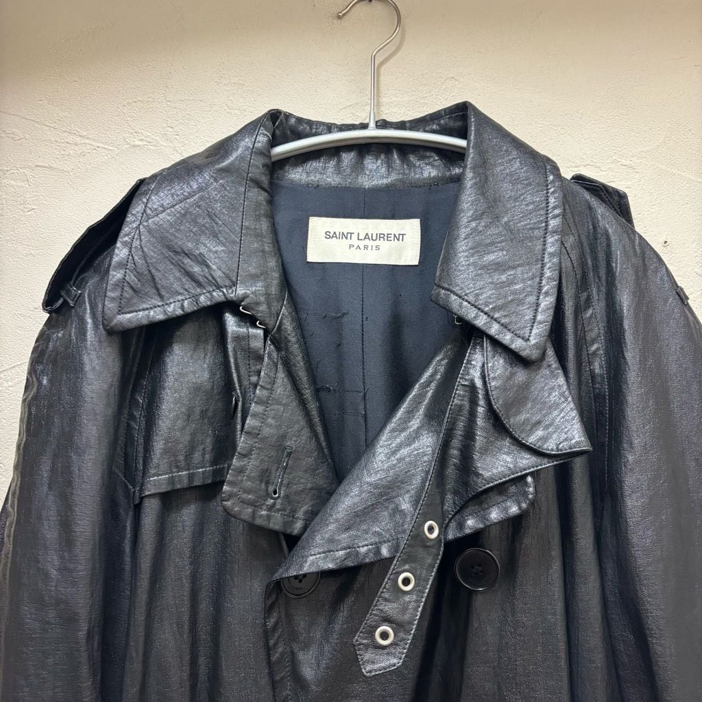 SAINT LAURENT PARIS サンローランパリ 13AW FAKE LEATHER TRENCH COAT トレンチコート 337876YM20U ブラック size:48【代官山A12】