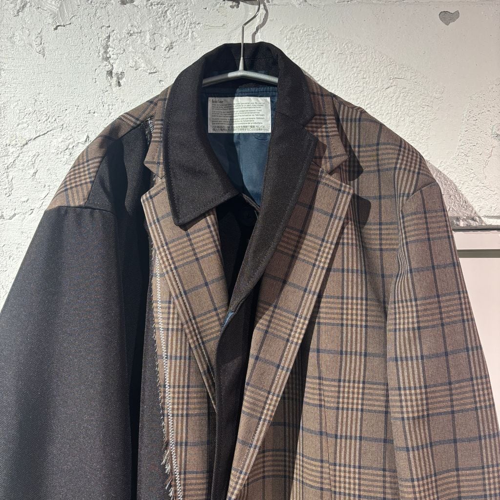kolor カラー 23AW Check Paneled Coat ドッキングコート 23WCM-C03106 ブラウン系 size:2【表参道A12】