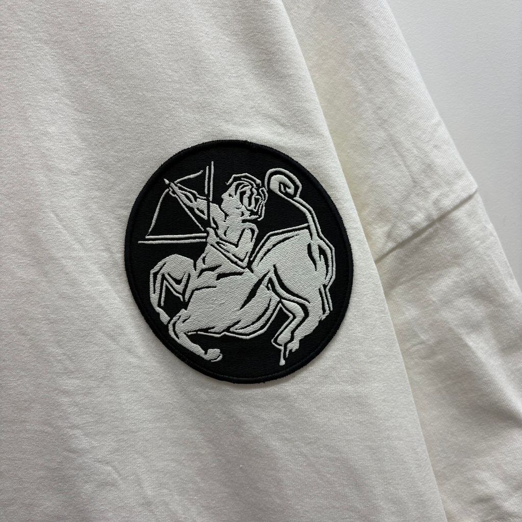 胸元のワッペンが特徴的な厚手のTシャツです。