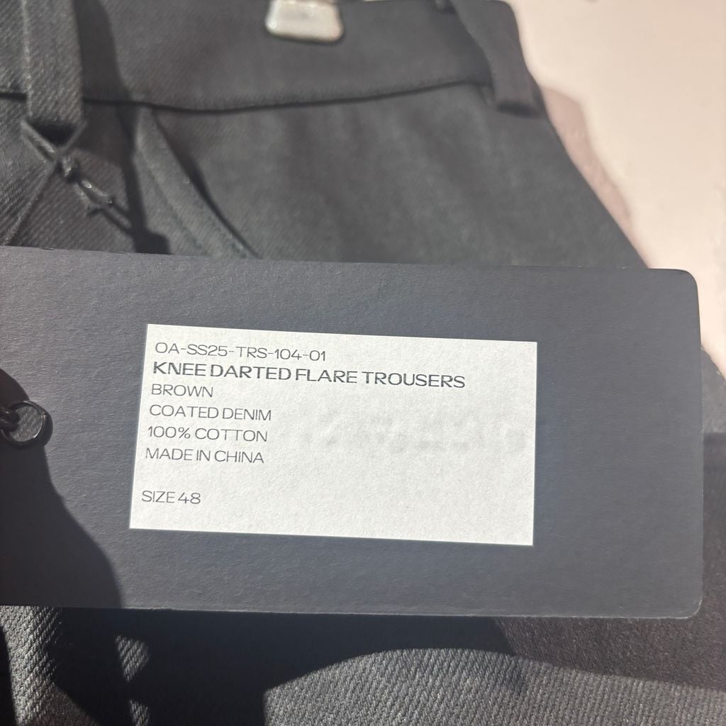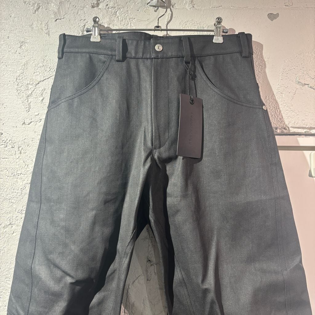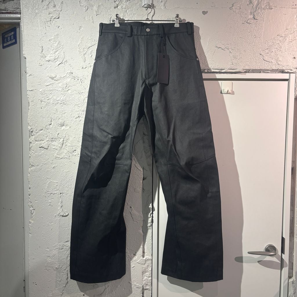 Omar Afridi オマールアフリディ 25SS KNEE DARTED FLARE TROUSERS コーティング デニム OA-SS25-TRS-104-01 ブラック size:48【表参道A12】