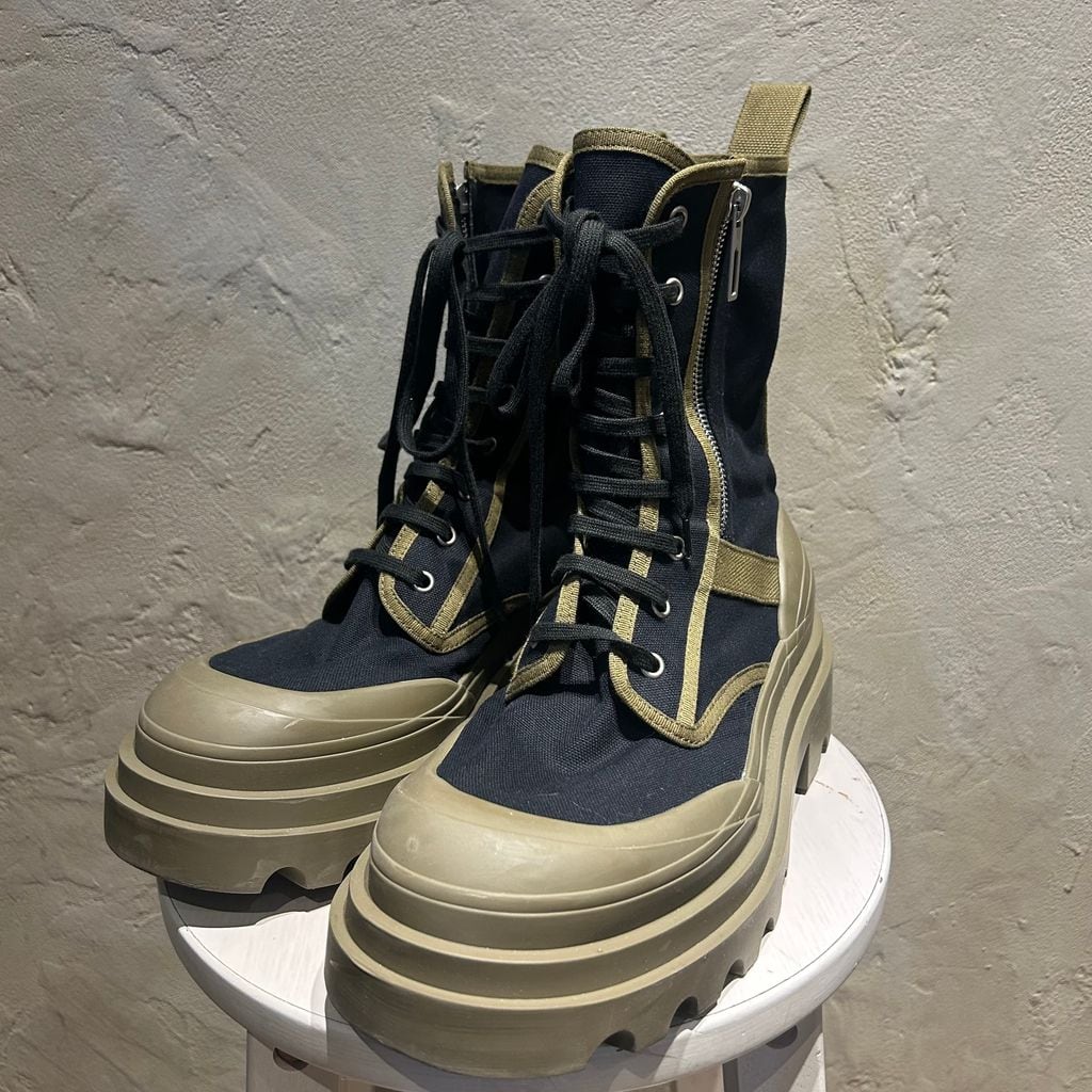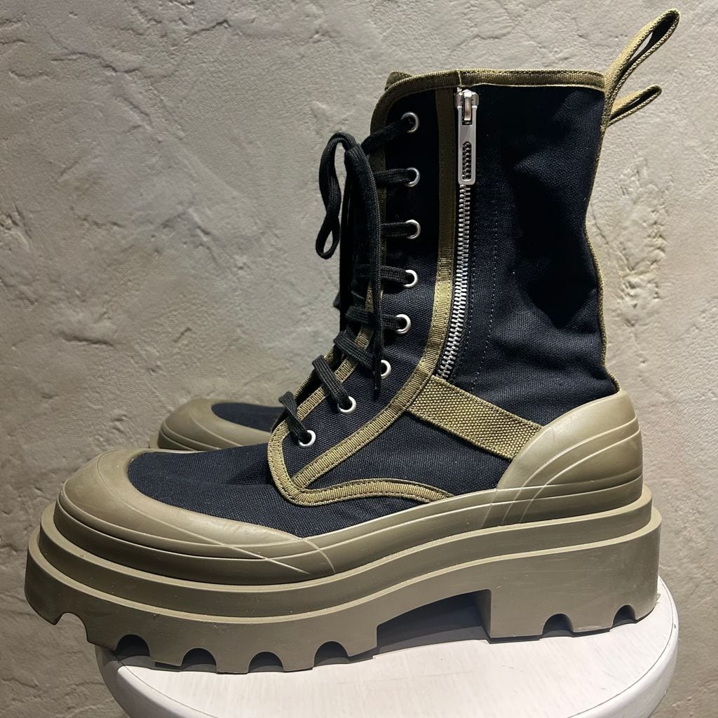 BOTTEGA VENETA ボッテガヴェネタ Bicolor Canvas Combat Boots ブーツ カーキ系 size:41【代官山A08】