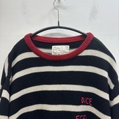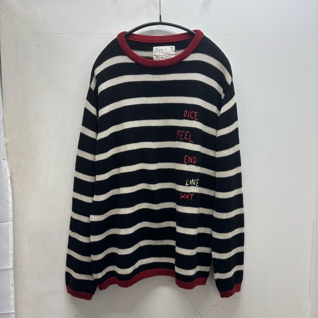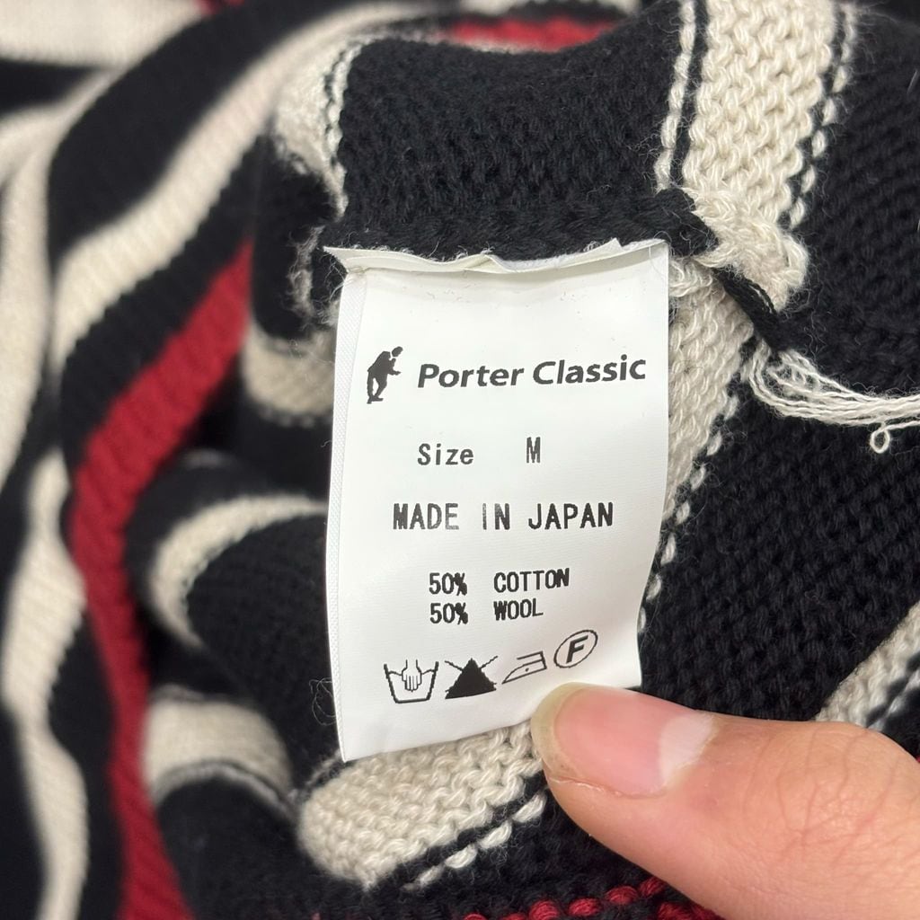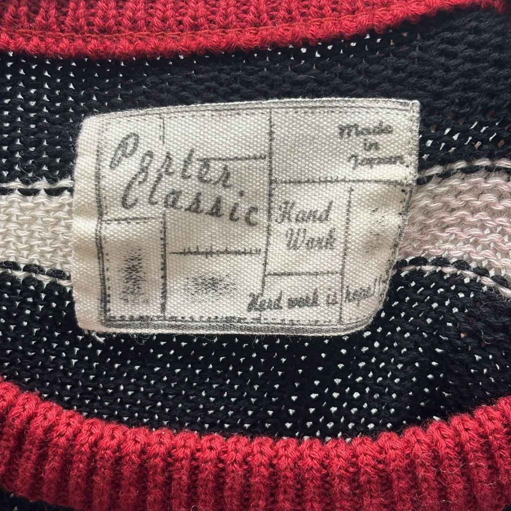 PORTER CLASSIC ポータークラシック HAND WORK CREW NECK WOOL KNIT ボーダーニット ブラック系 size:M【中目黒A12】