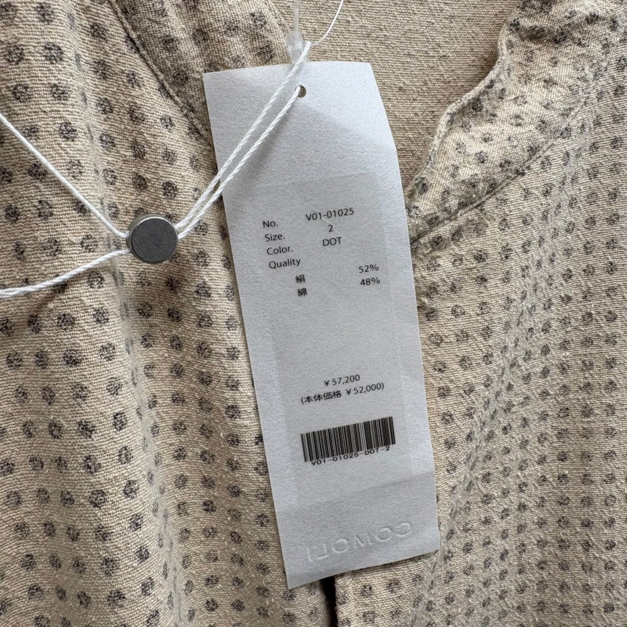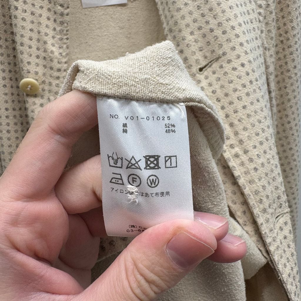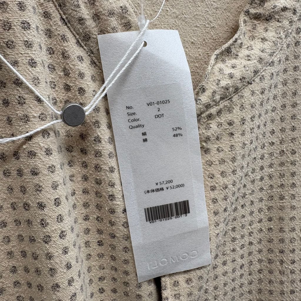 掠れたドットをプリントで施したシルクコットン生地は、ネップ感のある軽い風合いのあるアイテムです。