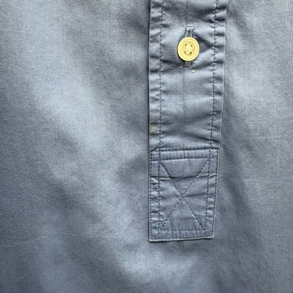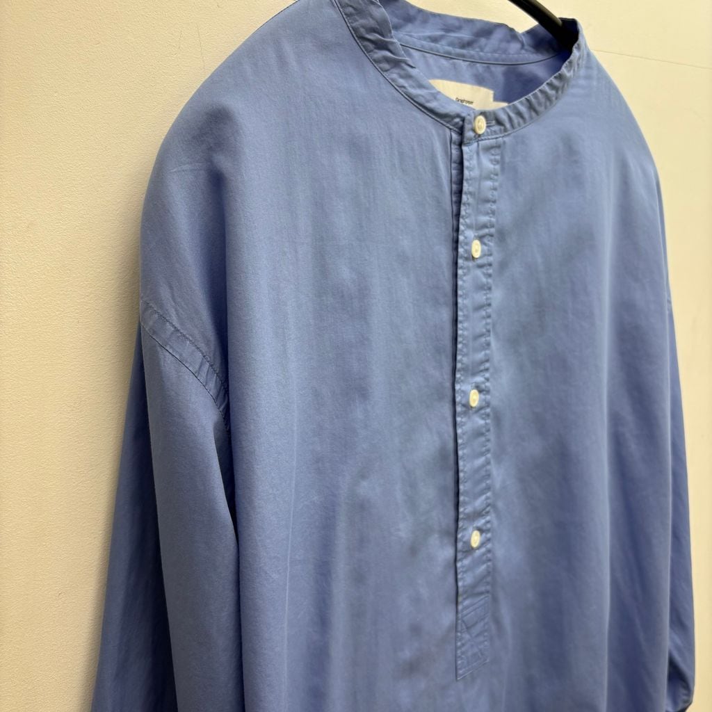 ボックスシルエットでプルオーバータイプの細いバンドカラーシャツです。
