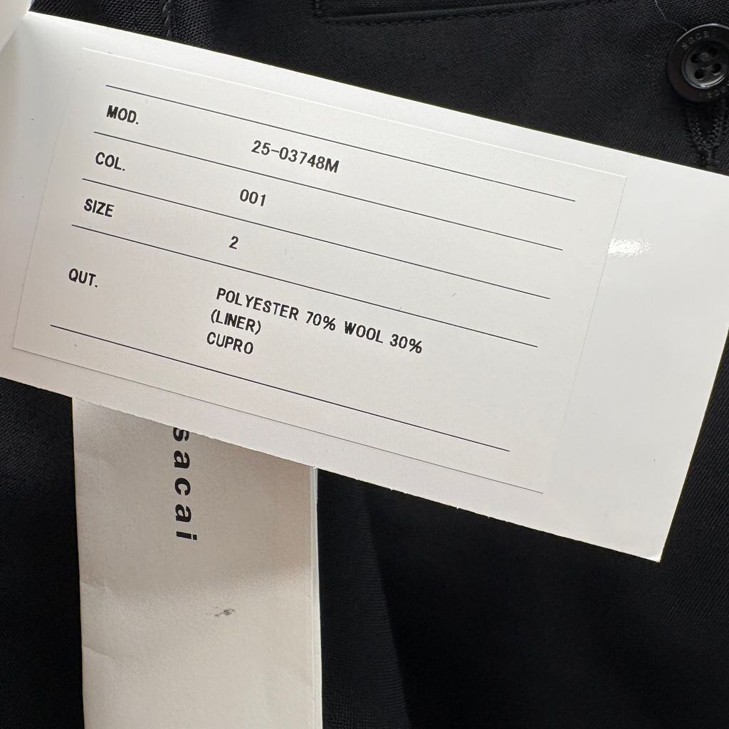 sacai サカイ Suiting Pants ベルテッドパンツ 25-03748M ブラック size:2【代官山A12】
