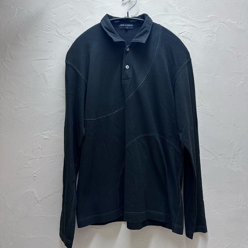 COMME des GARCONS HOMME コムデギャルソンオム 07AW Different Cotton Textures Polo Shirt ポロシャツ HT-T008 ブラック size:S 【代官山B01】