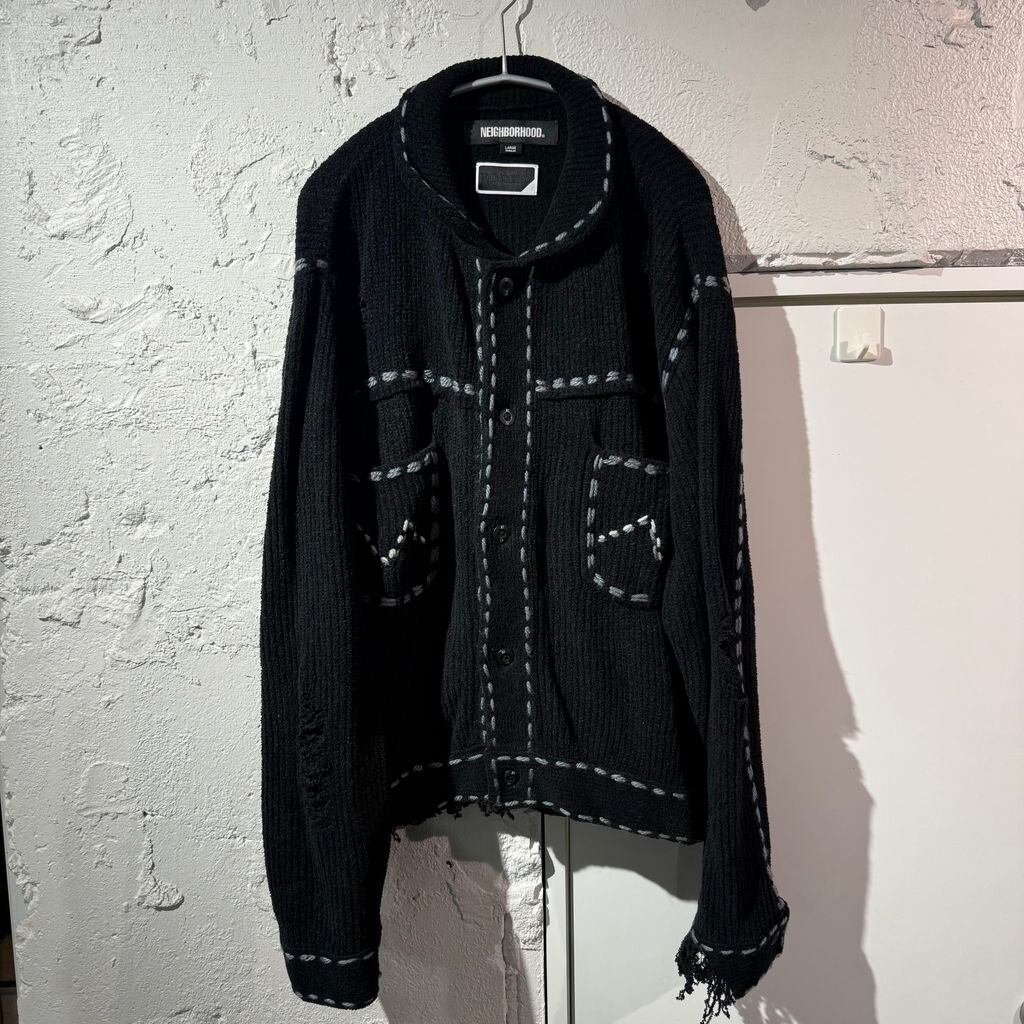 NEIGHBORHOOD × PHINGERIN ネイバーフッド フィンガリン 24AW PG1 Savage Knit ニットジャケット PD-242-NH-KN-011 ブラック size:L【表参道B01】