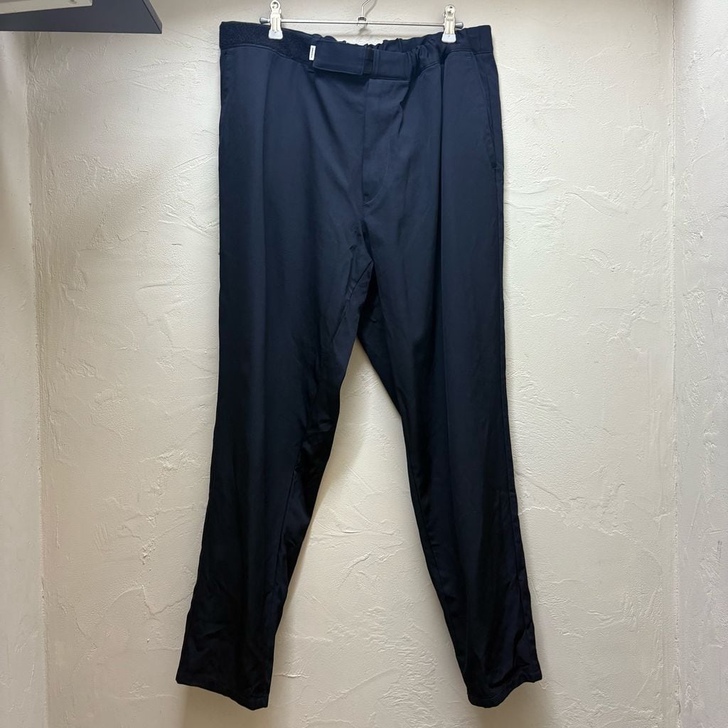 旧式のシャトル織機で丁寧に織り上げたオリジナルのウールギャバジン生地。 特殊加工で表面をナイロンのようなクリアな質感に仕上げております。 ウエスト位置を自在に変えられ、シルエット調整可能なフリーサイズのテーパードシルエットになります。