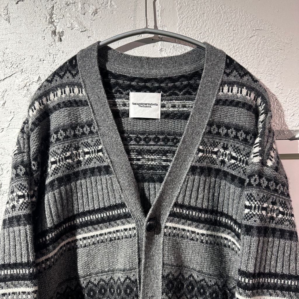 TAKAHIROMIYASHITATheSoloist. タカヒロミヤシタザソロイスト 25AW fair isle v-neck cardigan フェアアイルウールニットカーディガン sk.0012AW25 グレー size:48【表参道B01】 | ブランド古着Brooch