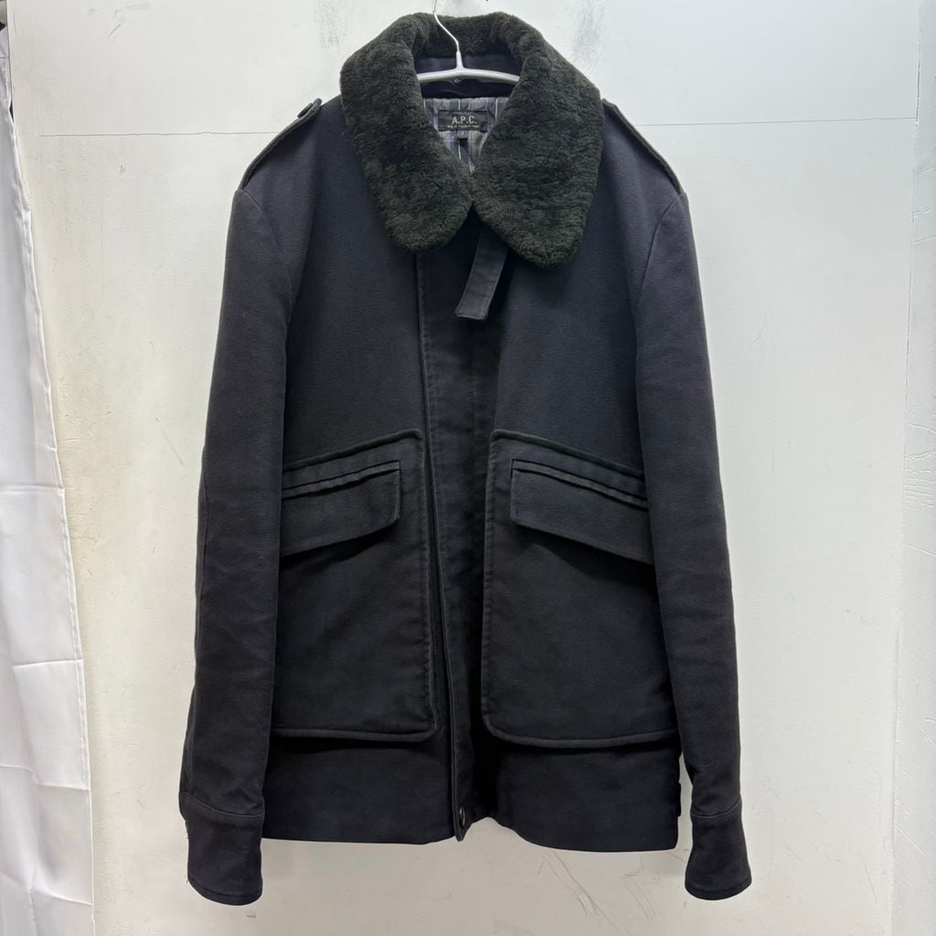 A.P.C アーペーセー 90s Moleskin Boa Collar Jacket フライトジャケット ネイビー size:3【中目黒B01】