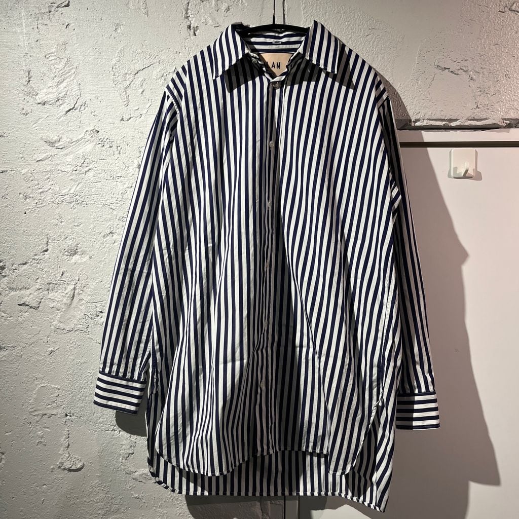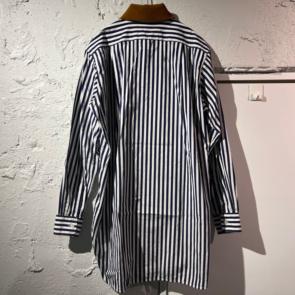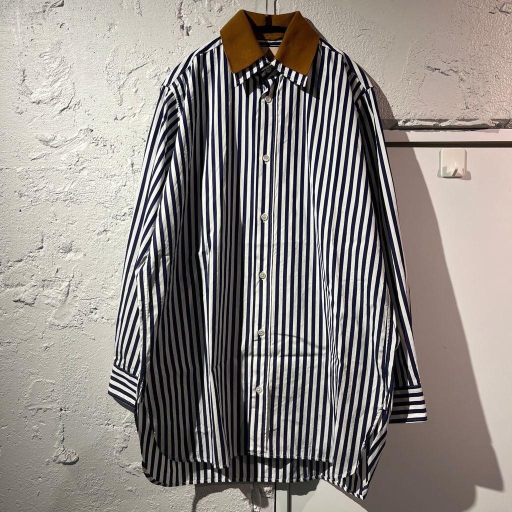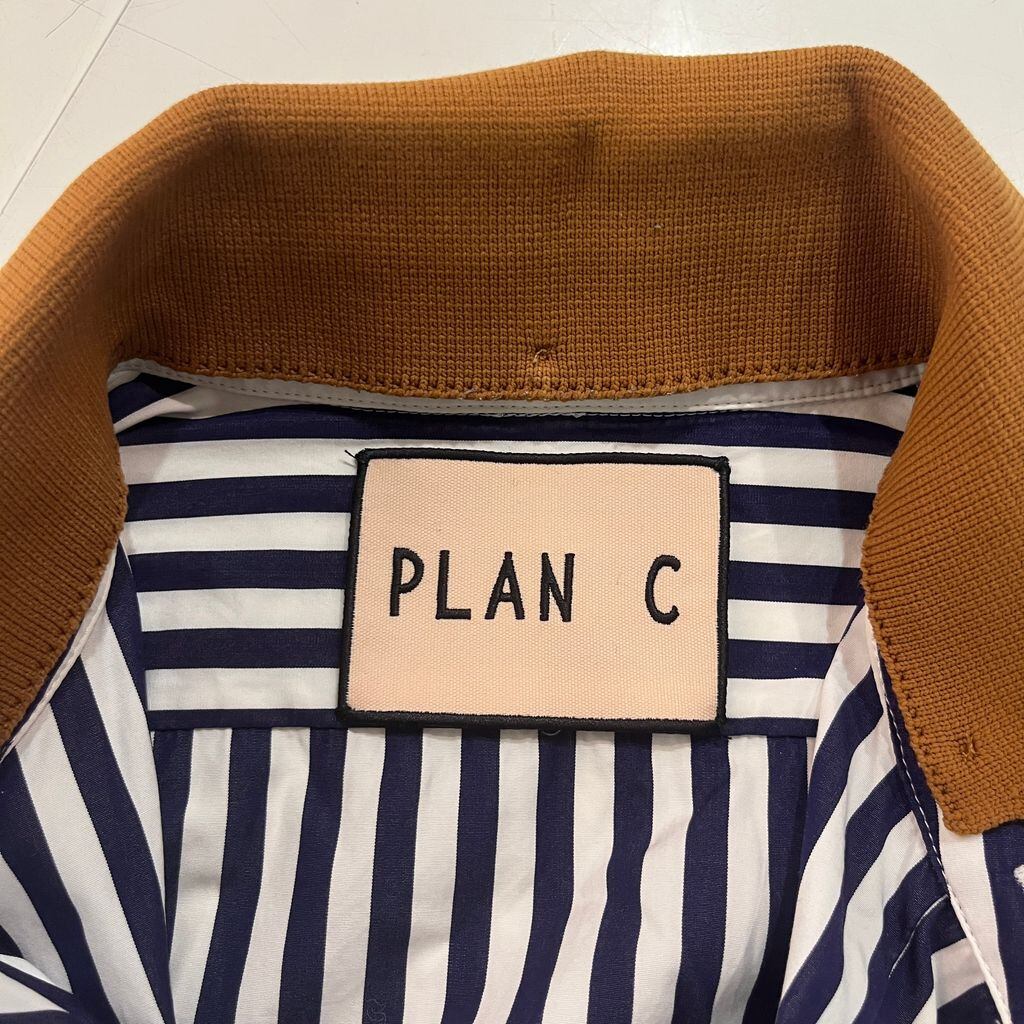 PLAN C プランシー 22SS Double Collar Stripe Shirt ダブルカラーシャツ CMCAA04BMOTC051 ネイビー系 size:38【表参道B01】