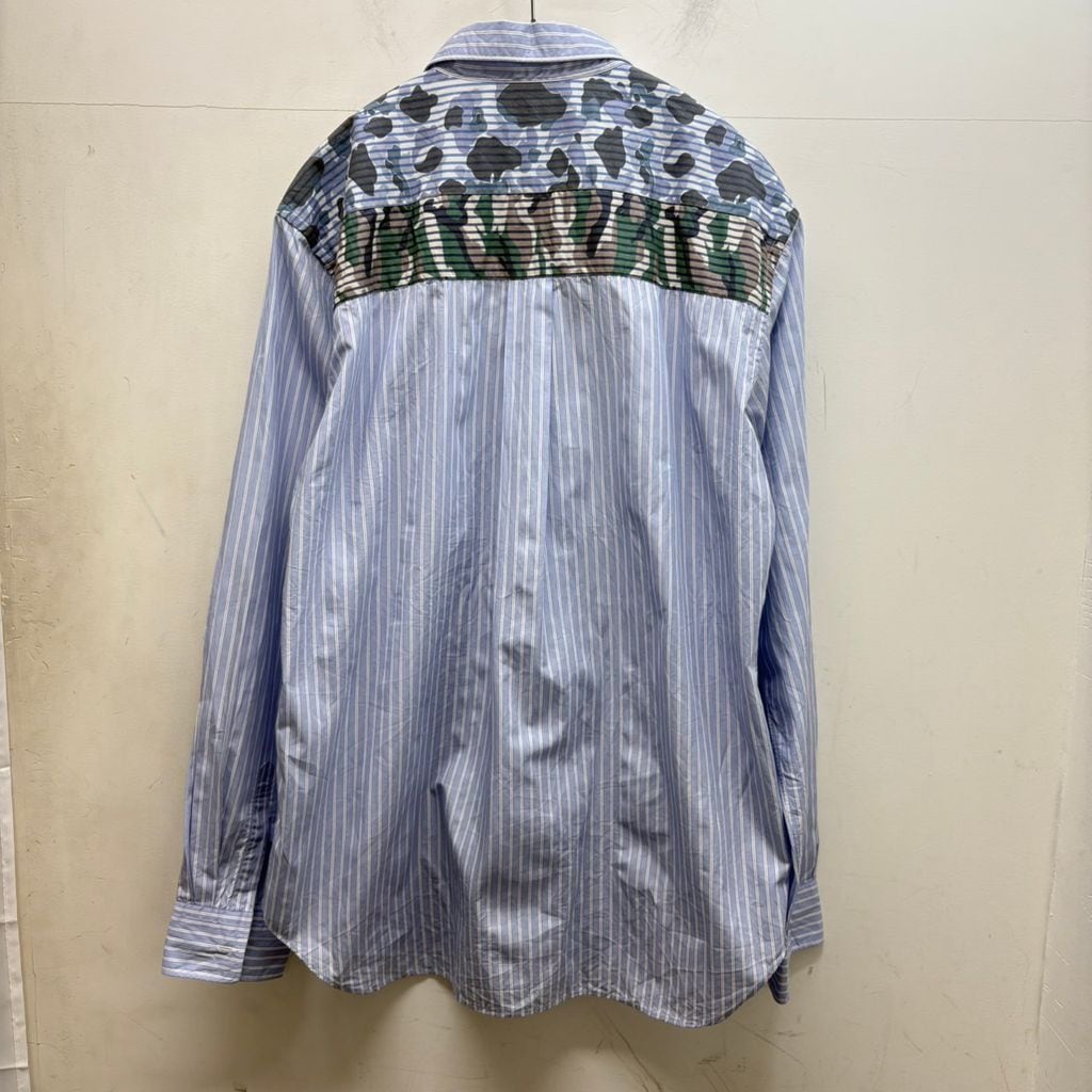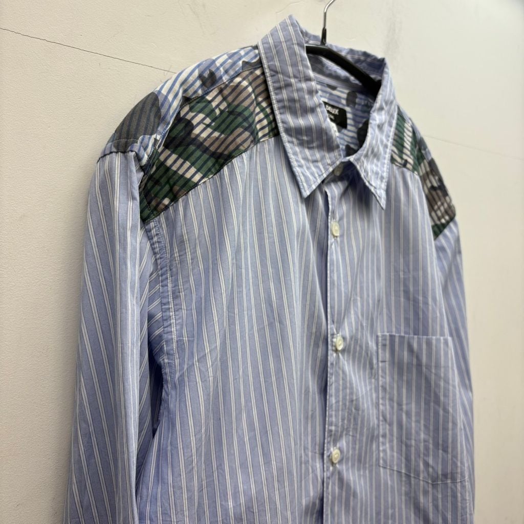 ストライプ柄をベースに、肩部分がカモ柄に切り替えられたデザインのアイテムです。