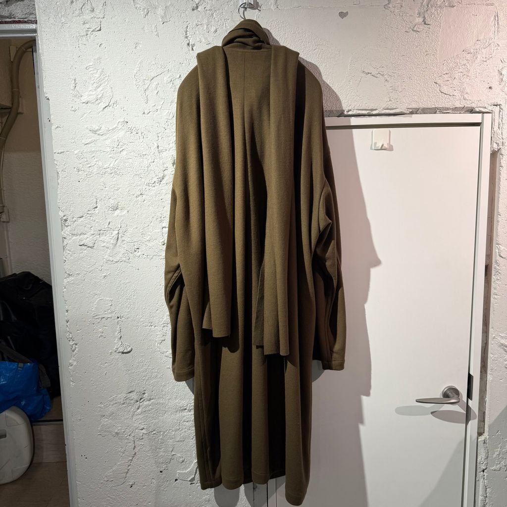 民族衣装から着想を得た襟元からストールの形状になったコートになります。