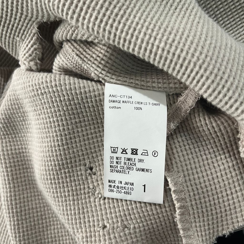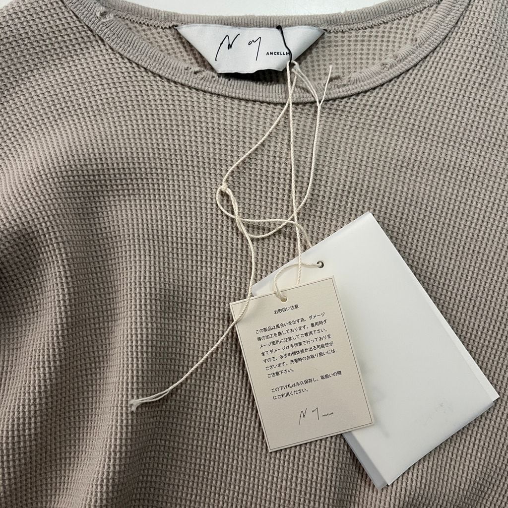 ANCELLM アンセルム 25AW DAMAGE WAFFLE CREW LS T-SHIRT ダメージ加工 ワッフル編み長袖Tシャツ ANC-CT134 ベージュ size:1【表参道B01】 | ブランド古着Brooch