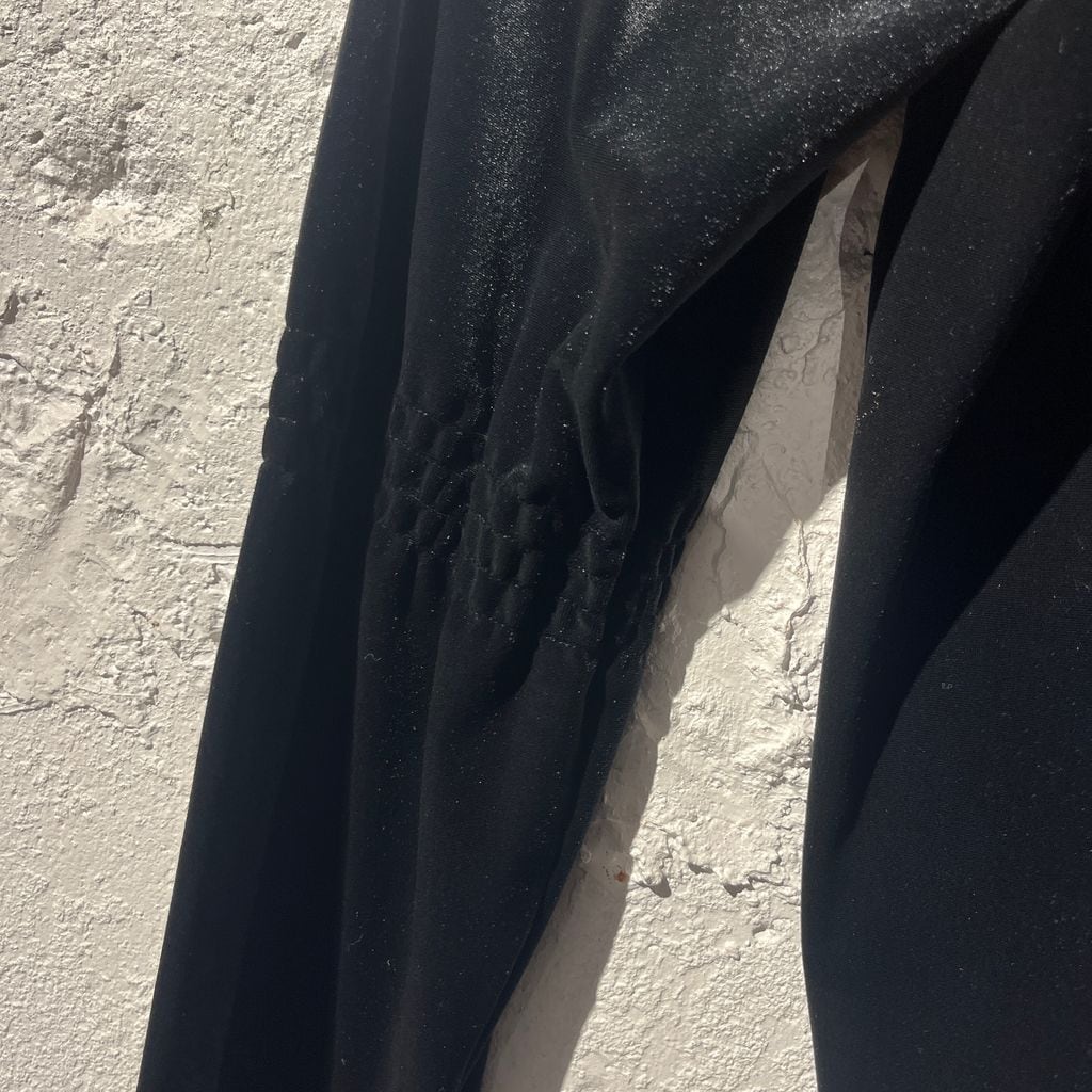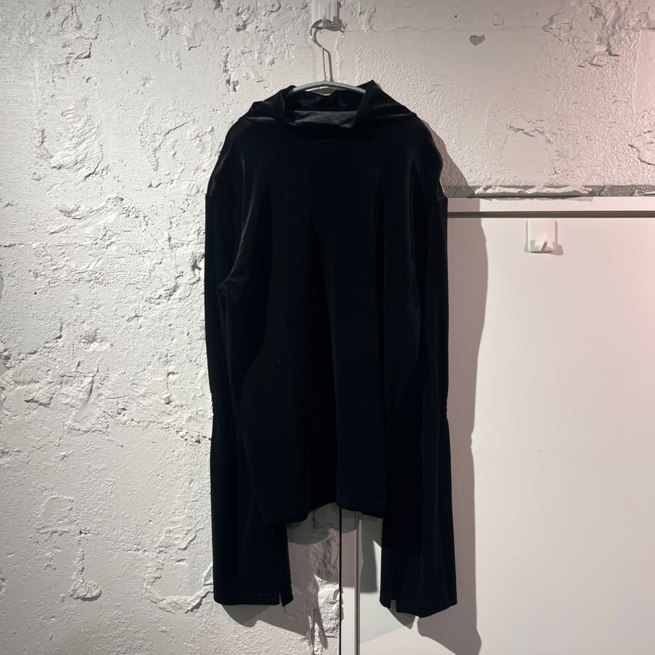 袖口のスリットや腕のシャーリングのデザインが特徴的なアイテムです。