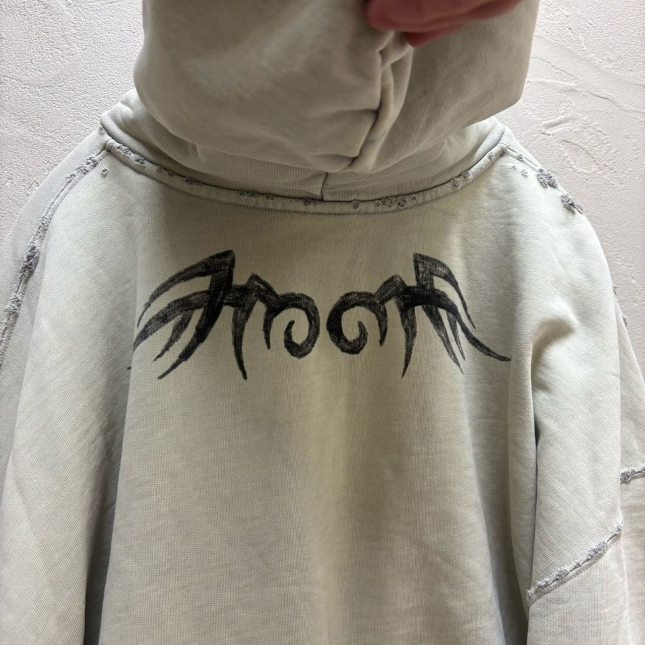 ダメージ加工が全体的に施されていて、ダブルジップでシルエットを変えることができるアイテムです。