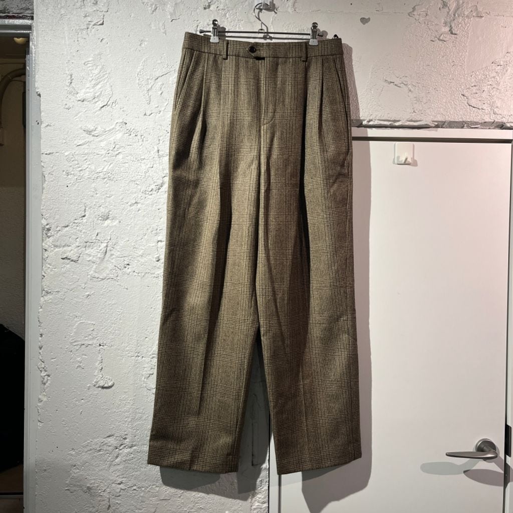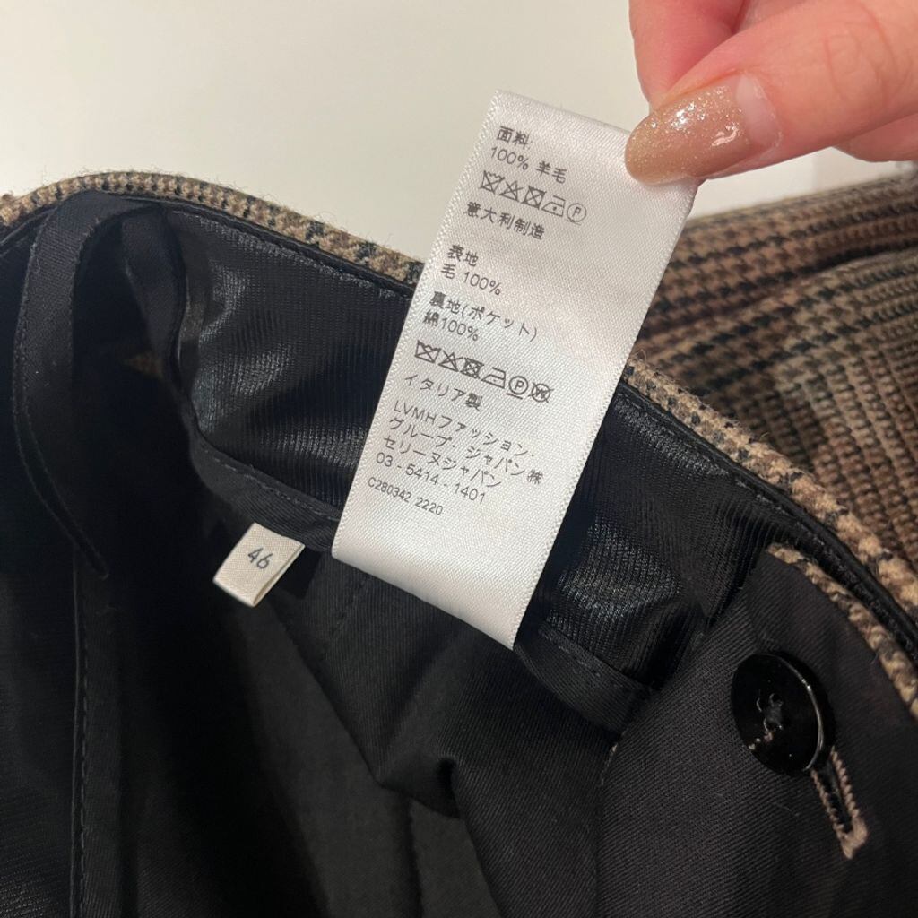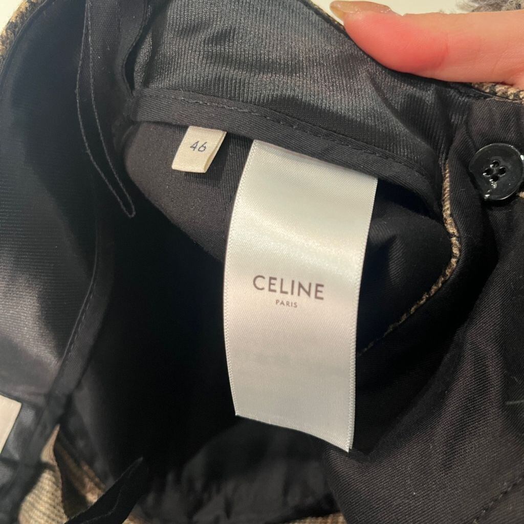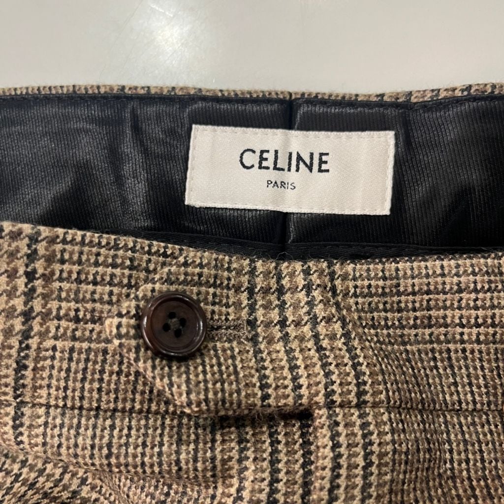 CELINE セリーヌ 21AW Skate Pants Prince Of Wales Check Wool チェック柄 ワイドパンツ 2P555983N ブラウン系 size:46【表参道B01】