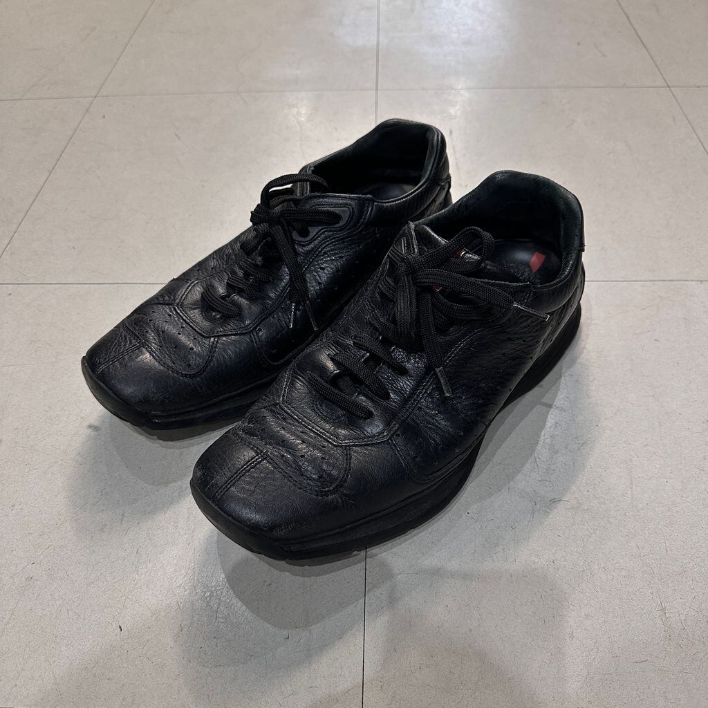PRADA SPORT プラダスポーツ Leather Sneakers スニーカー E0872 ブラック size:8 1/2【中目黒B01】