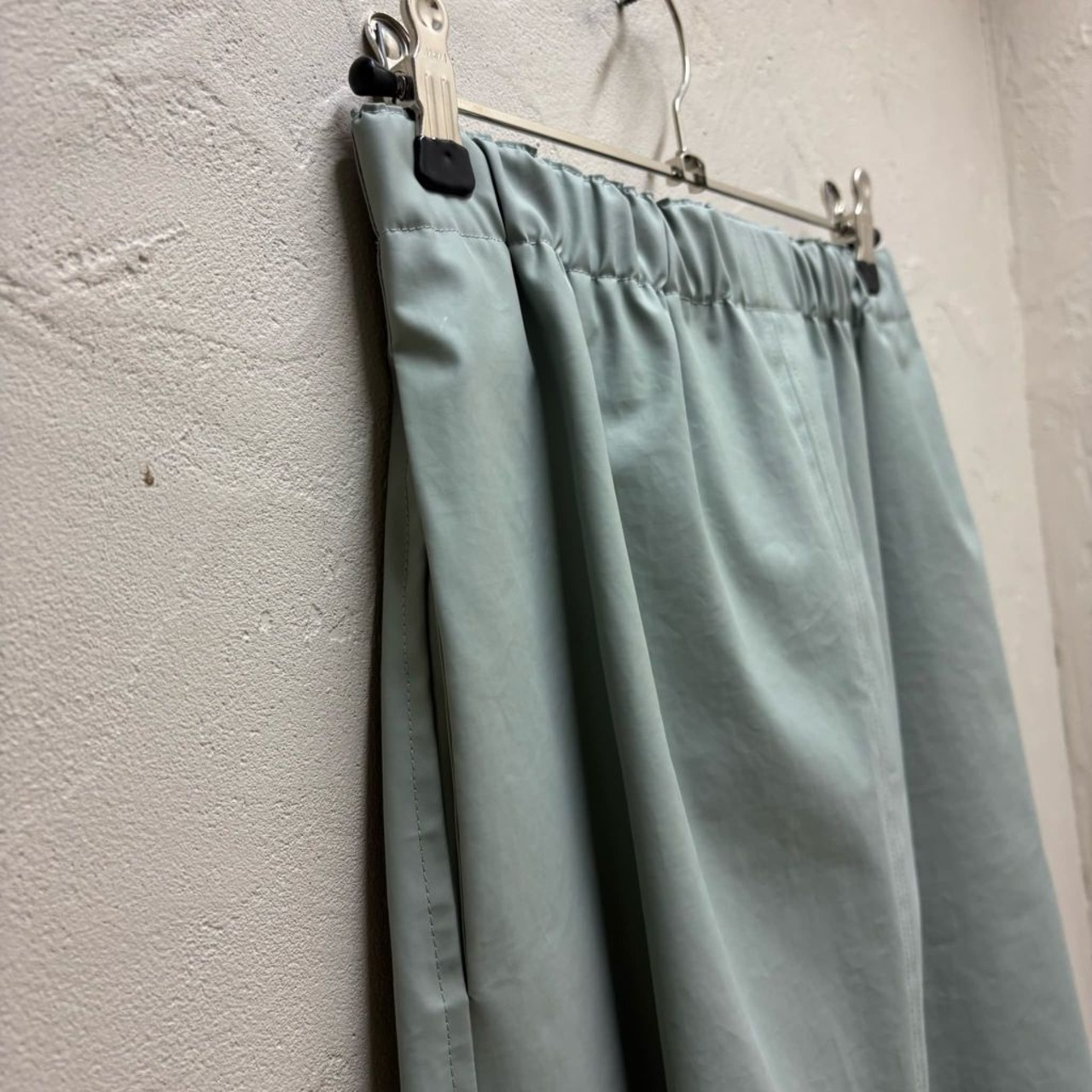 独特な生地感でウエストがゴムだったりポケットが付いていたりと、実用性・デザイン性を兼ね備えた一着です。