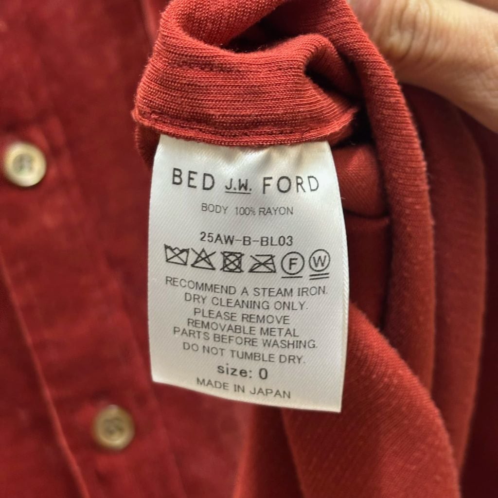 BED J.W. FORD ベッドフォード 25AW Holiday Shirt ベロアシャツ 25AW-B-BL03 オレンジ系 size:0【代官山B01】