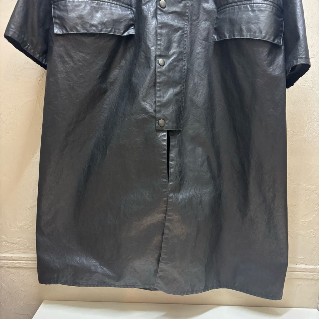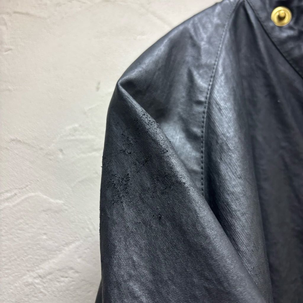 光沢感のあるコーティングされた生地で王道のアイテムを当ブランドらしくモードに落とし込んだ一着です。