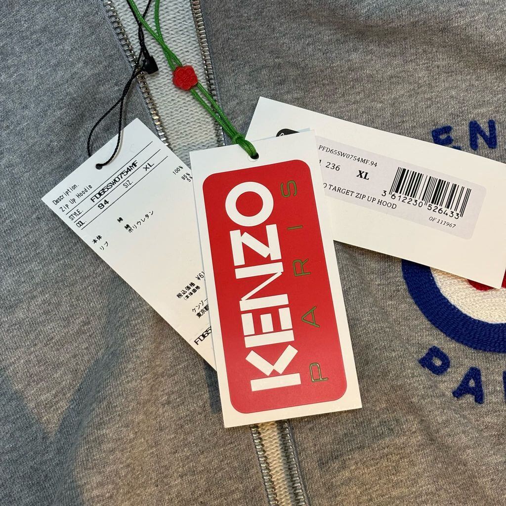 KENZO ケンゾー TARGET ZIP UP HOODIE ジップパーカー フーディー FD65SW0754MF グレー size:XL【代官山B01】