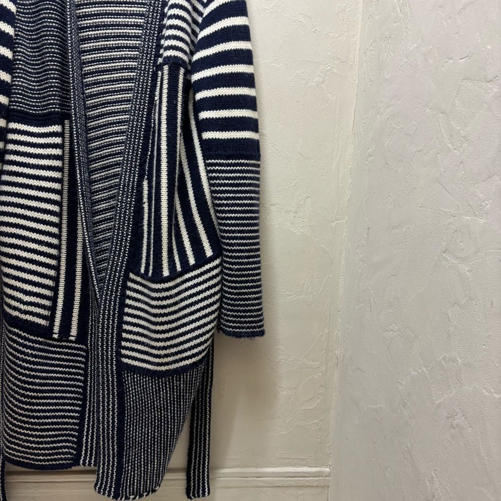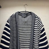様々なボーダーデザインが入ったニット素材のガウンコートです。