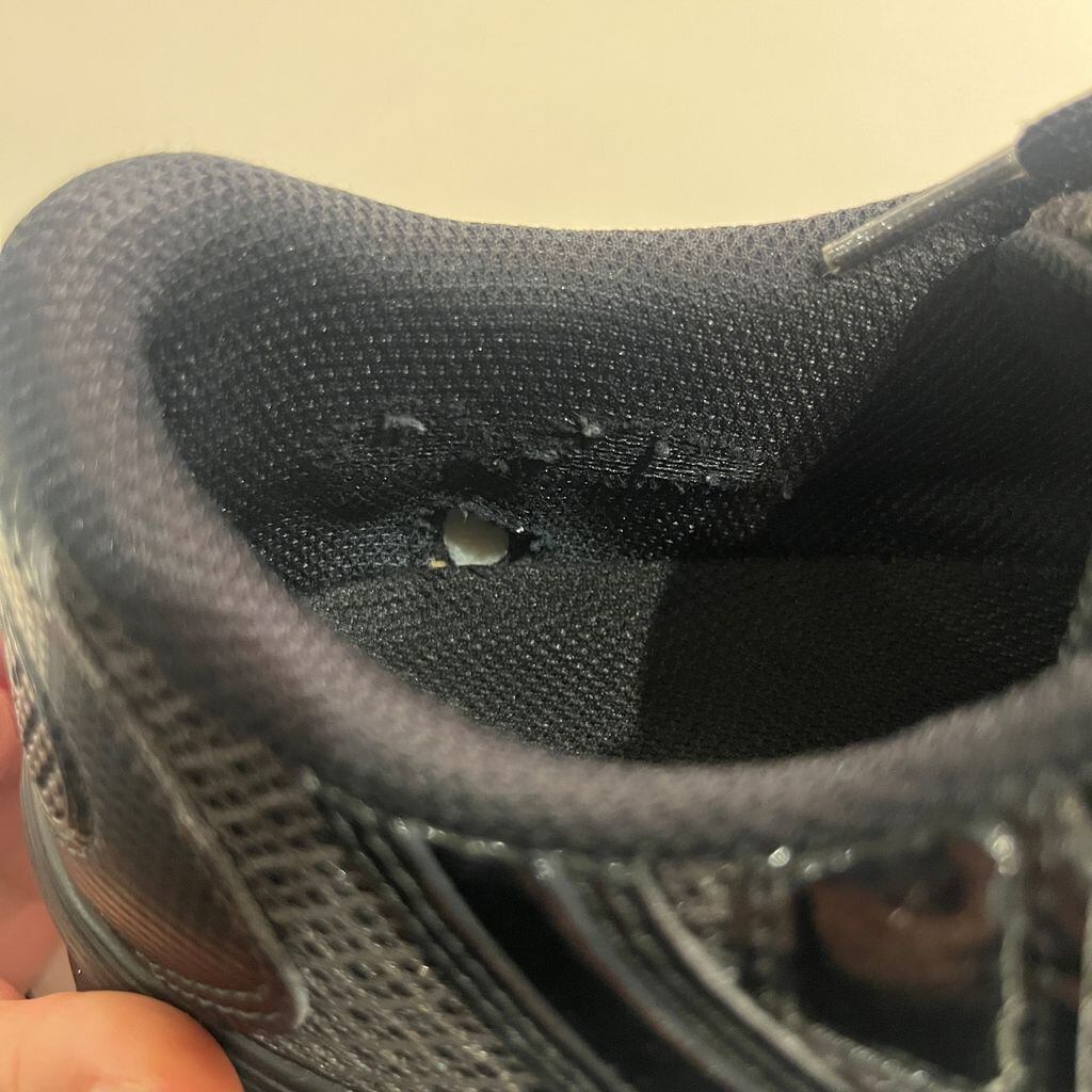 踵部分内側に破れがございます。(画像参照)