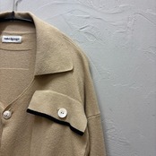 シャツ型のニットでブラックのラインがアクセント担っているアイテムです。