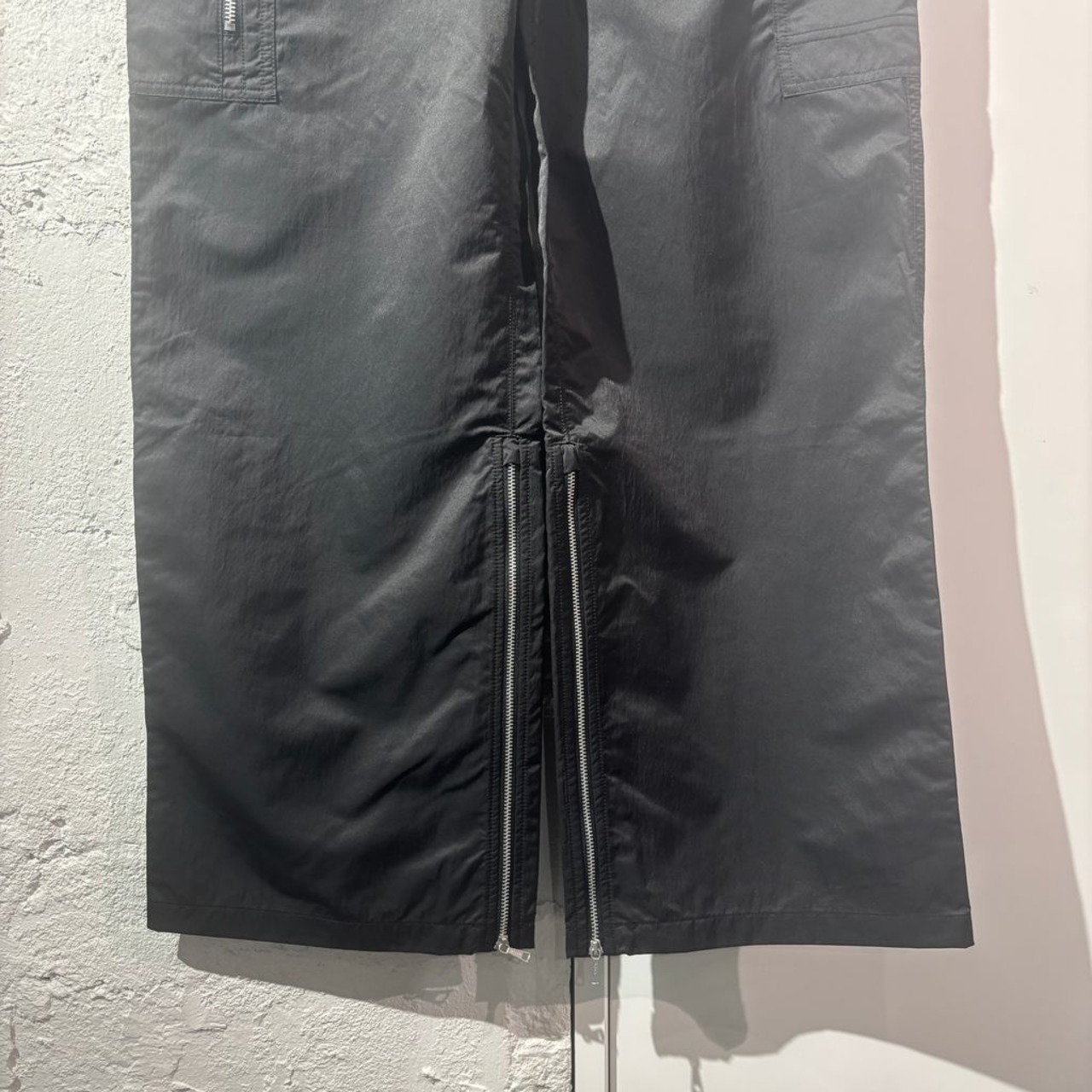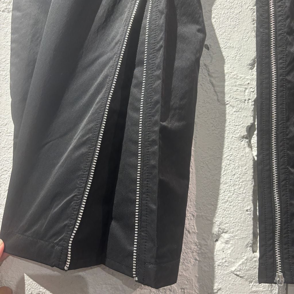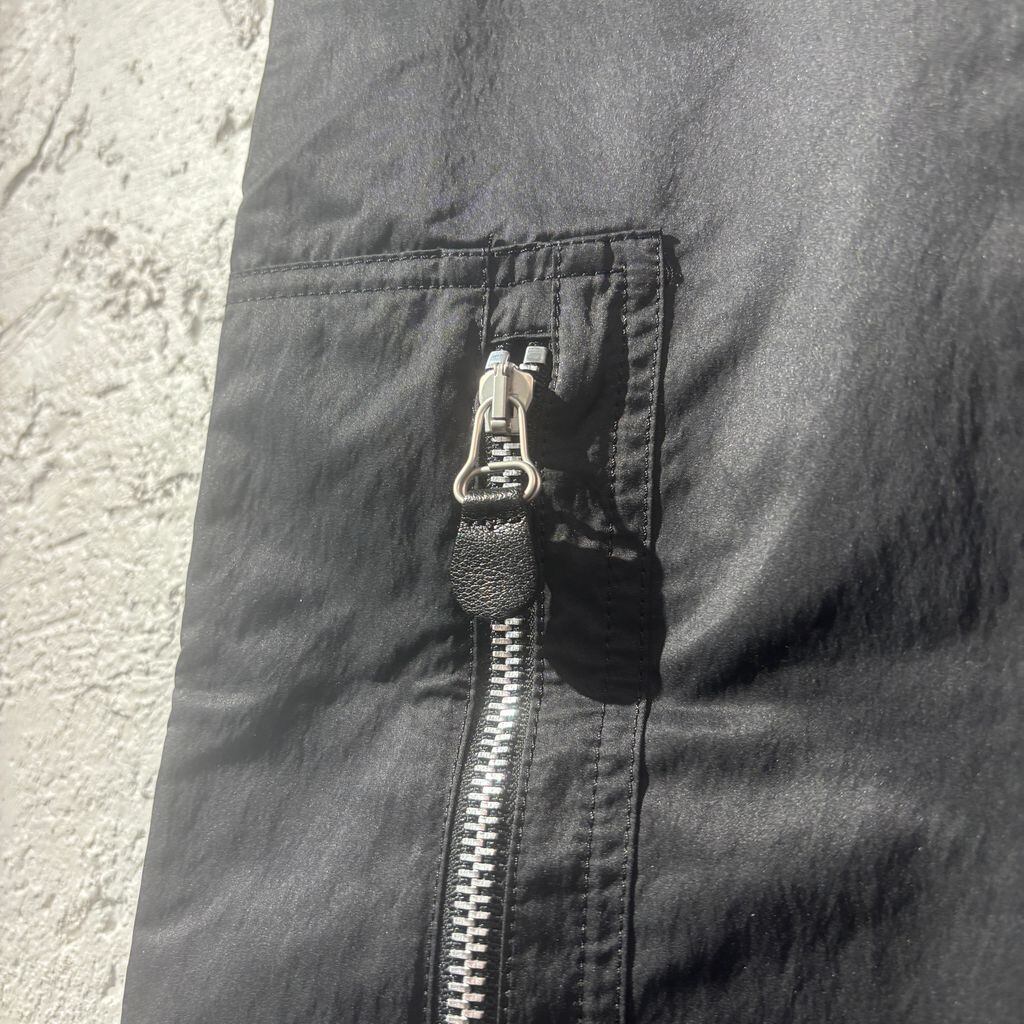 ジップのデザインが特徴のナイロンカーゴパンツです。