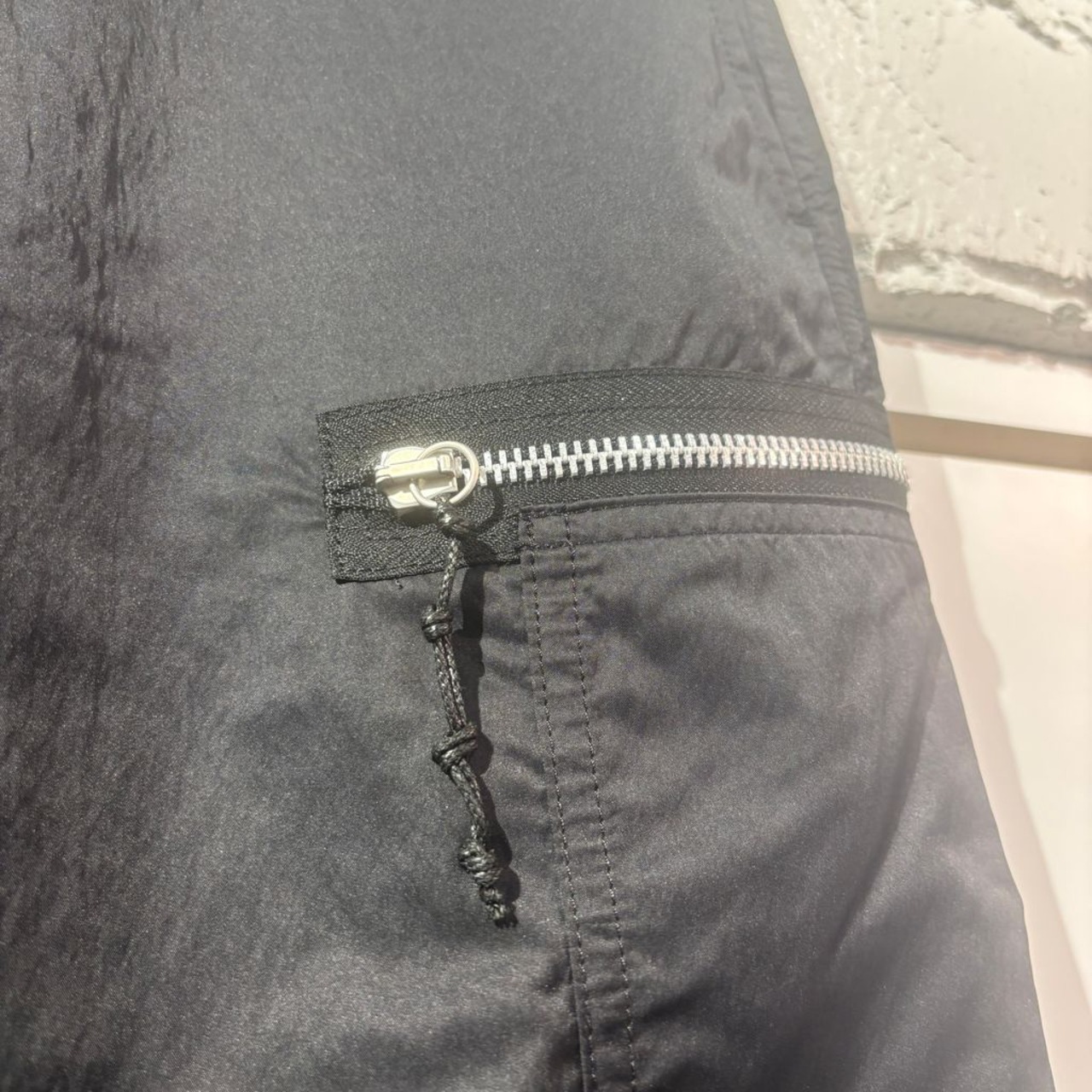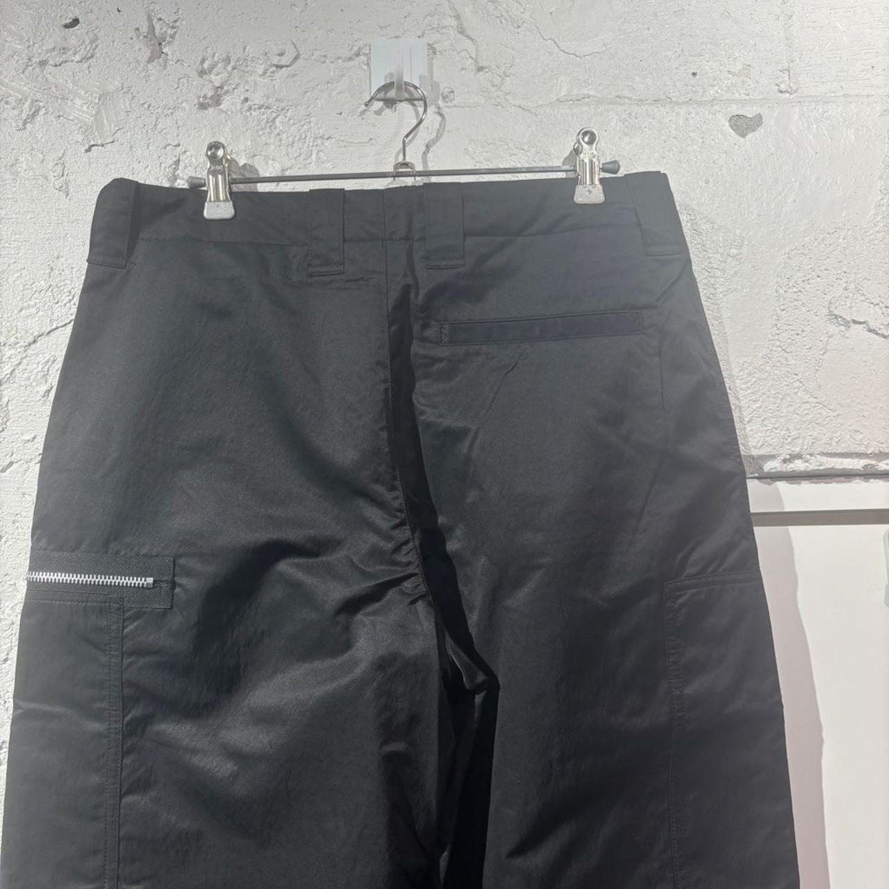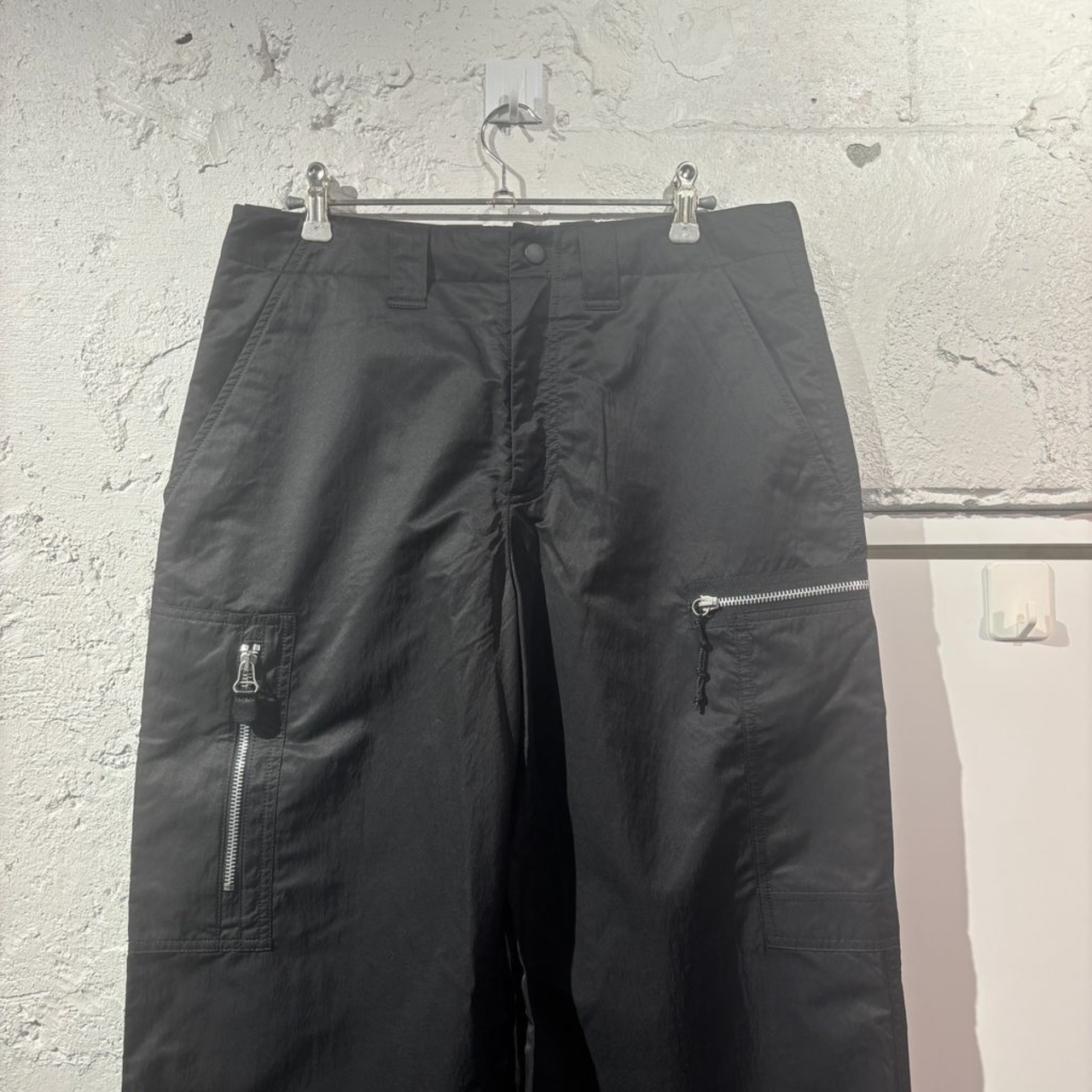 ジップのデザインが特徴のナイロンカーゴパンツです。